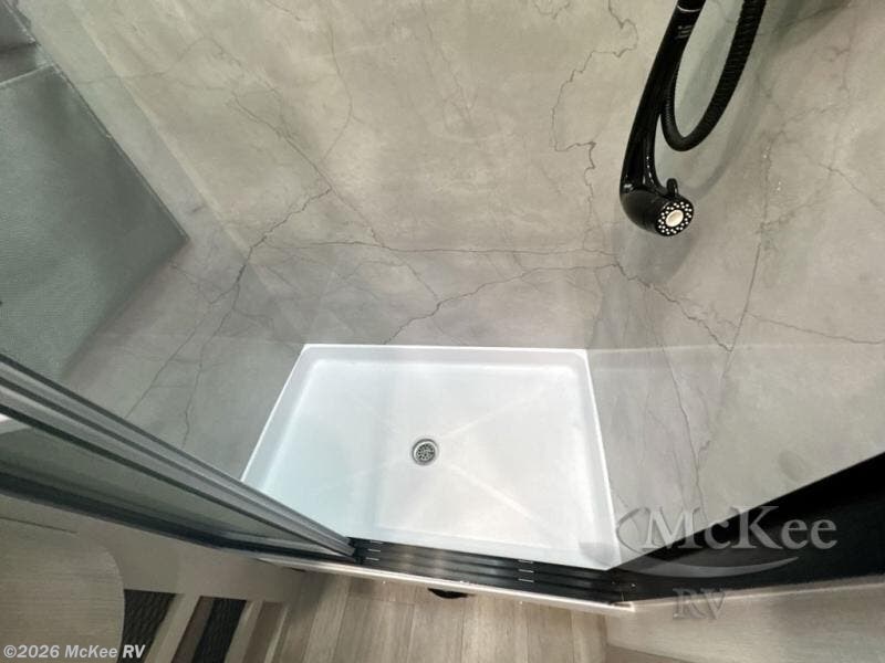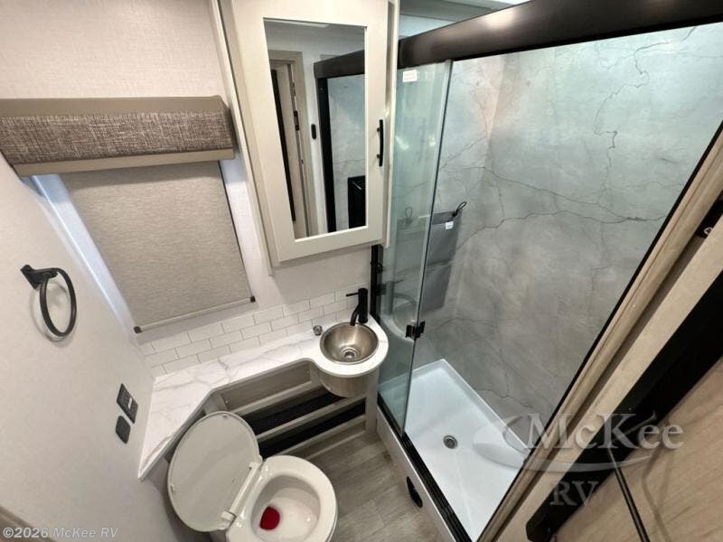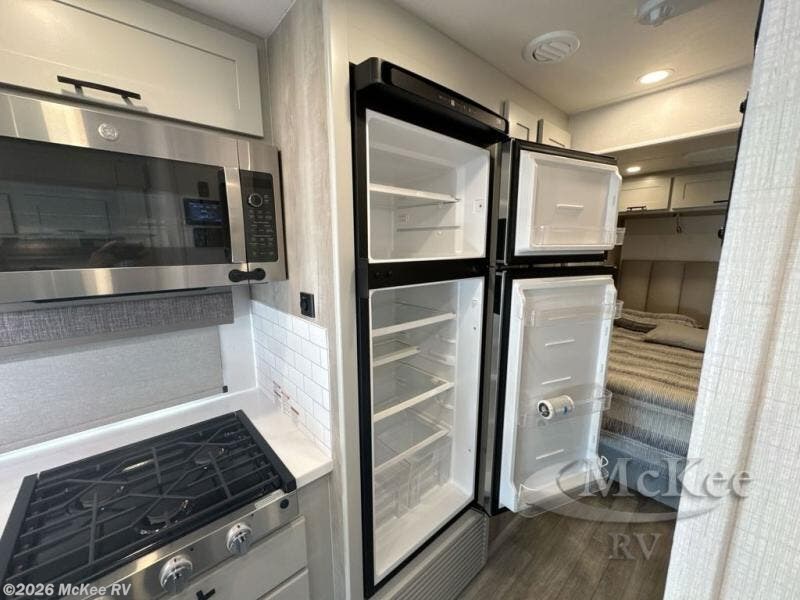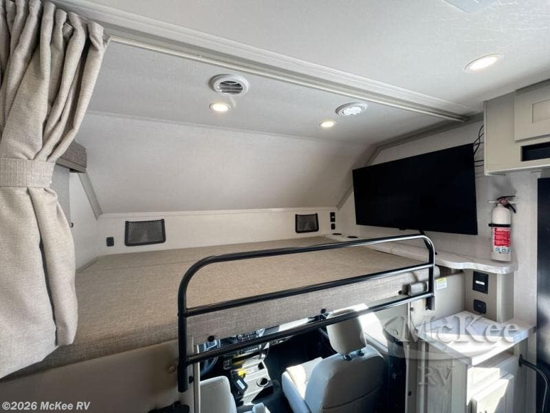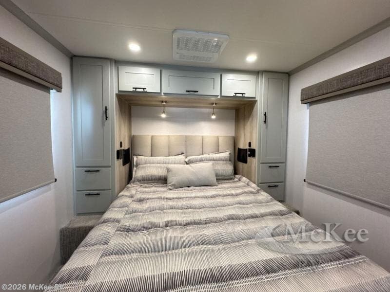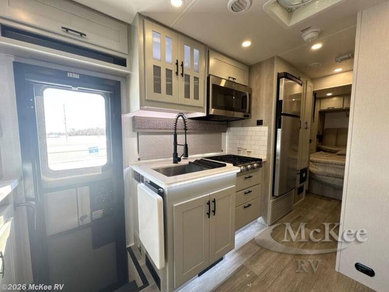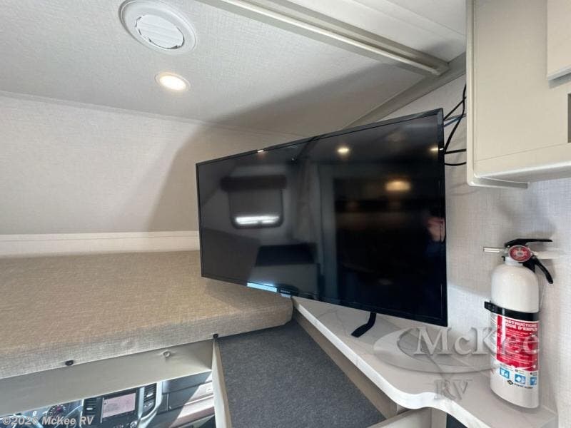 Pick a spot on the map and start traveling there in comfort with this motorhome! The rear private bedroom has a 60" x 75" gel-infused memory foam mattress for a good night's rest, LED reading lights, USB charging ports to charge your electronics while you recharge, and a 32" LED smart TV to watch movies in true comfort. The full bathroom has a designer shower with a skylight above for added head room and natural lighting and an Oxygenics body spa RV shower head for an even better showering experience on the road. The kitchen has everything you could need to prepare delicious home cooked meals including a countertop extension for more meal prepping space, and you can enjoy all of your meals at the booth dinette slide which can also transform into an extra sleeping space!