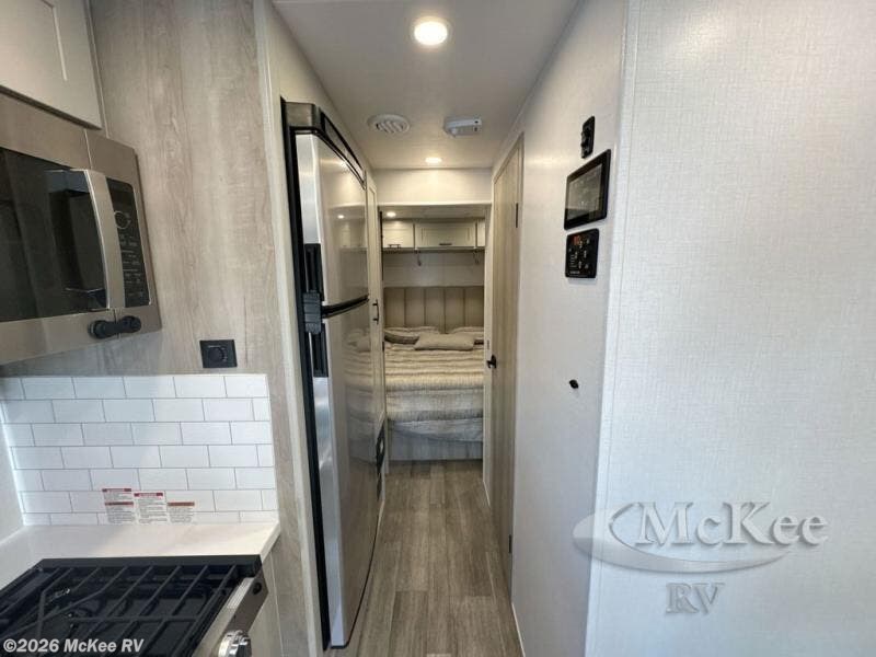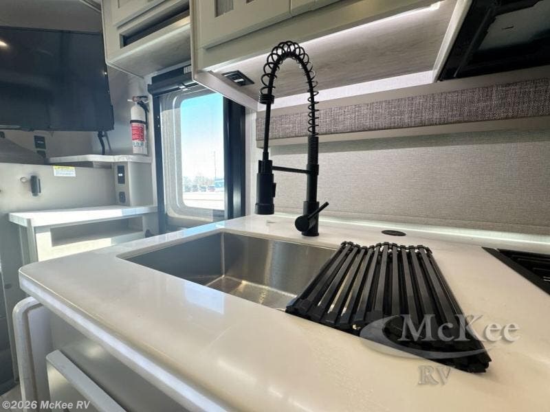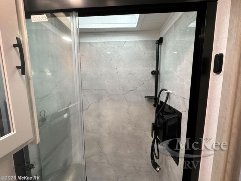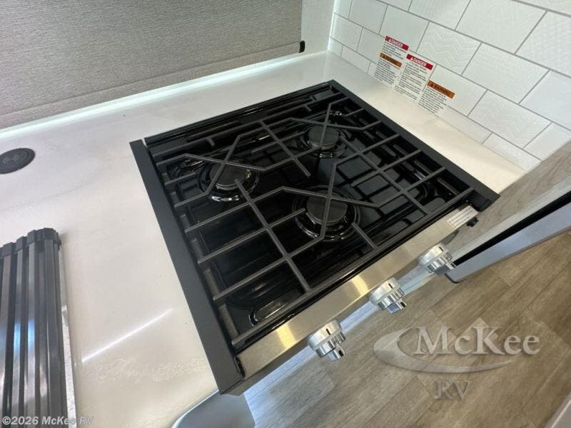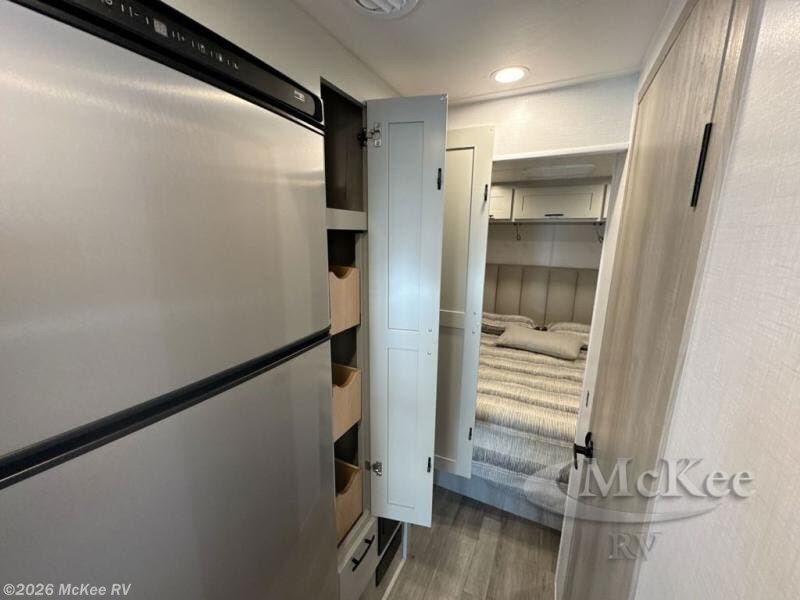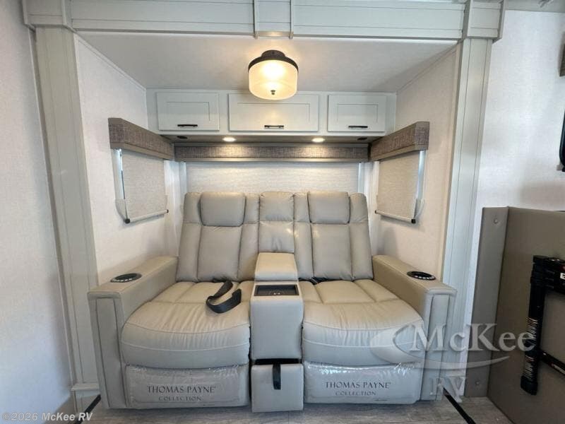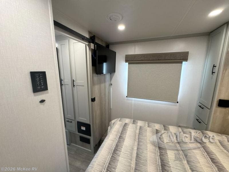 Pick a spot on the map and start traveling there in comfort with this motorhome! The rear private bedroom has a 60" x 75" gel-infused memory foam mattress for a good night's rest, LED reading lights, USB charging ports to charge your electronics while you recharge, and a 32" LED smart TV to watch movies in true comfort. The full bathroom has a designer shower with a skylight above for added head room and natural lighting and an Oxygenics body spa RV shower head for an even better showering experience on the road. The kitchen has everything you could need to prepare delicious home cooked meals including a countertop extension for more meal prepping space, and you can enjoy all of your meals at the booth dinette slide which can also transform into an extra sleeping space!