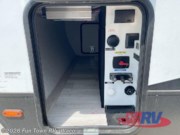 You can comfortably sleep four to six in this travel trailer thanks to the rear double bunk beds and a king bed. There is also additional storage where you will find plenty of space as well as in the overhead cabinets and dual wardrobes and night stands. The combined living area and kitchen includes a large slide for more space, and a booth dinette with an optional free-standing dinette. Great accessibility thanks to the two entry doors. In the exterior, there is also a 21ยด awning and a Kayak door, especially for the adventurous ones! finally after a long day take a comfortable and relaxing shower in our full rear bathroom.
