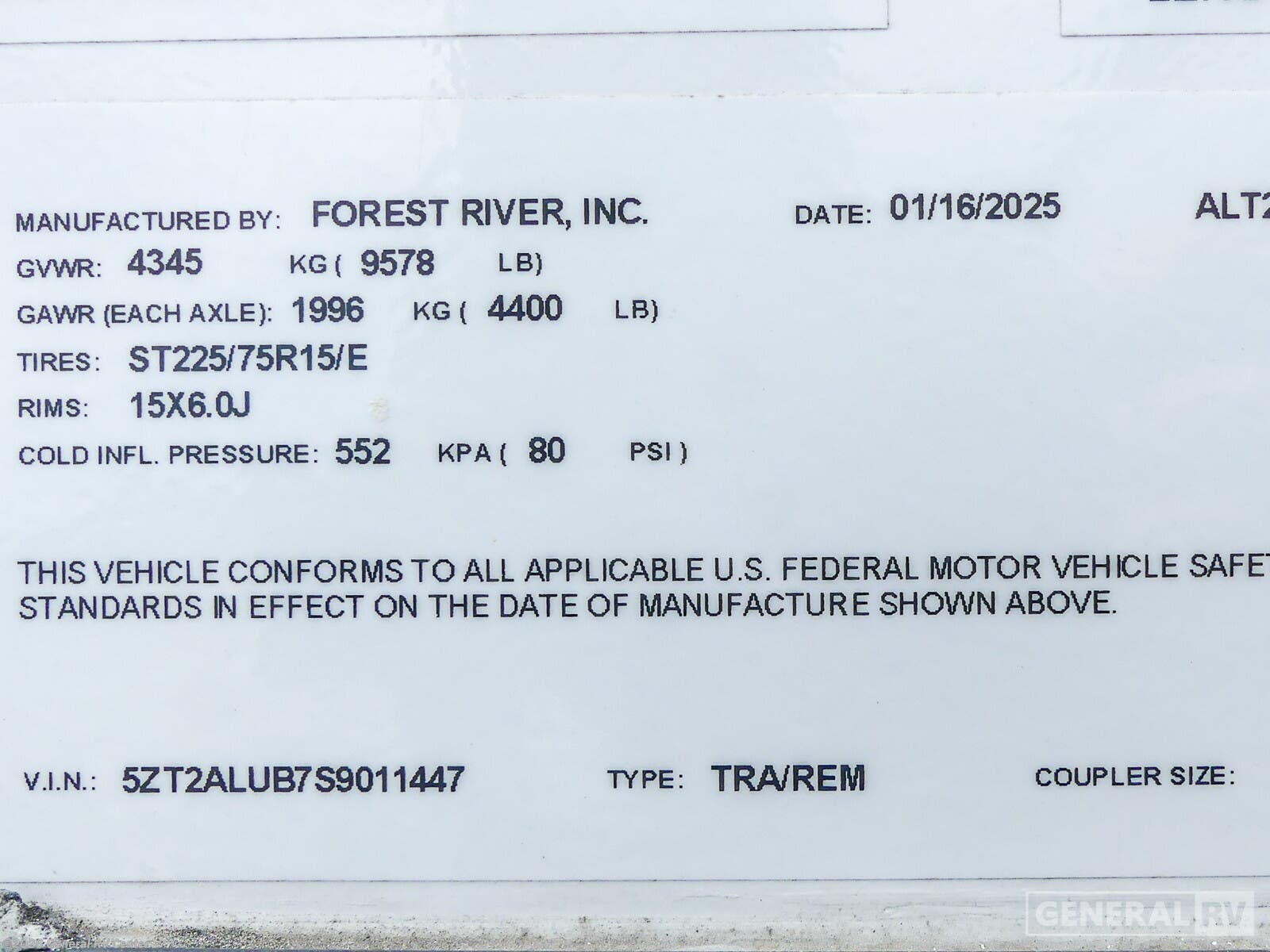 - VIN5ZT2ALUB7S9011447