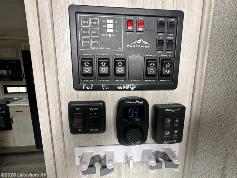 With any Blackthorn mid-profile fifth wheel by EAST TO WEST, you will find luxury amenities at every turn! There is Radiant Technology Composites insulation in the roof, front cap and underbelly, plus Azdel laminated sidewalls with block foam insulation for 4-seasons camping! You will love how easy it will be to tow your fifth wheel with Dexter axles and a MORryde CRE 3000 suspension, and the electric automatic leveling system means you can set up camp in no-time! The exterior also includes an adjustable power awning with LED lights, LED motion sensor lights in the pass-through storage, and a universal all-in-one docking station to easily manage your units tank levels and functions. Head inside to find vinyl flooring, solid wood shaker style cabinet doors with hidden hinges, a seamless fiberglass shower, and many more elegant features!