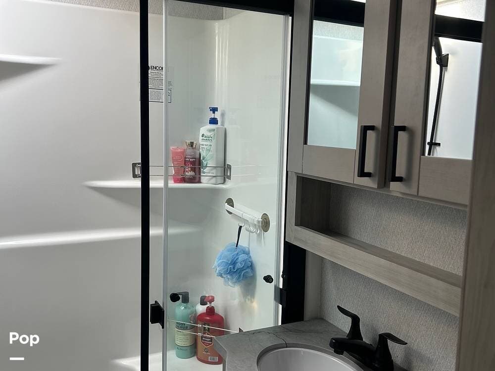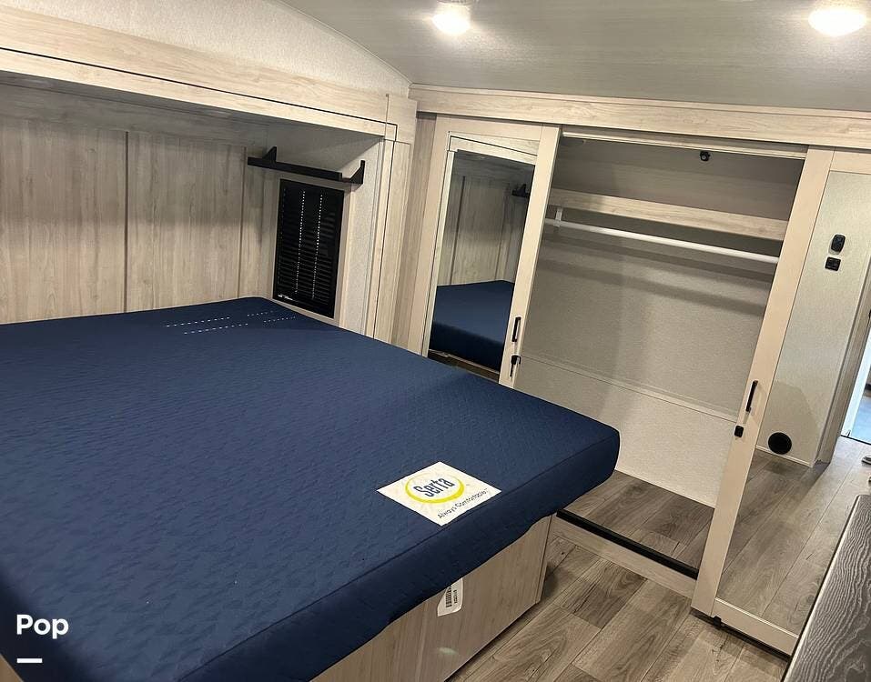 The RV has numerous upgrades, including a Solar Panel and Converter to keep the Battery charged and ready for your next trip, two Power Patio Awnings, Slide-out awning toppers, Solid Entry Steps, and more!