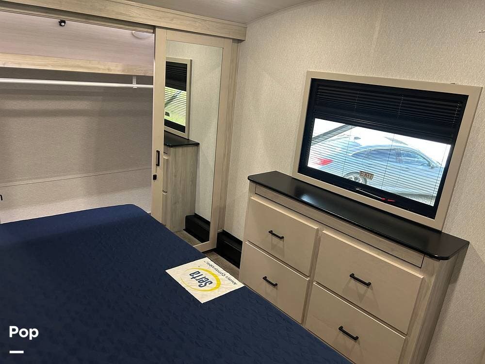 There is a dress with a hidden jewelry compartment in the dresser at the foot of the bed. The bedroom is prepped for a second TV, should you desire one - it could be easily added. The bedroom also has its own AC unit and thermostat, separate from the living and dining area's AC, which controls the rest of the RV's cooling.