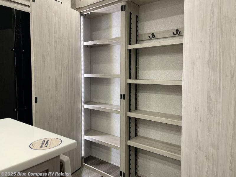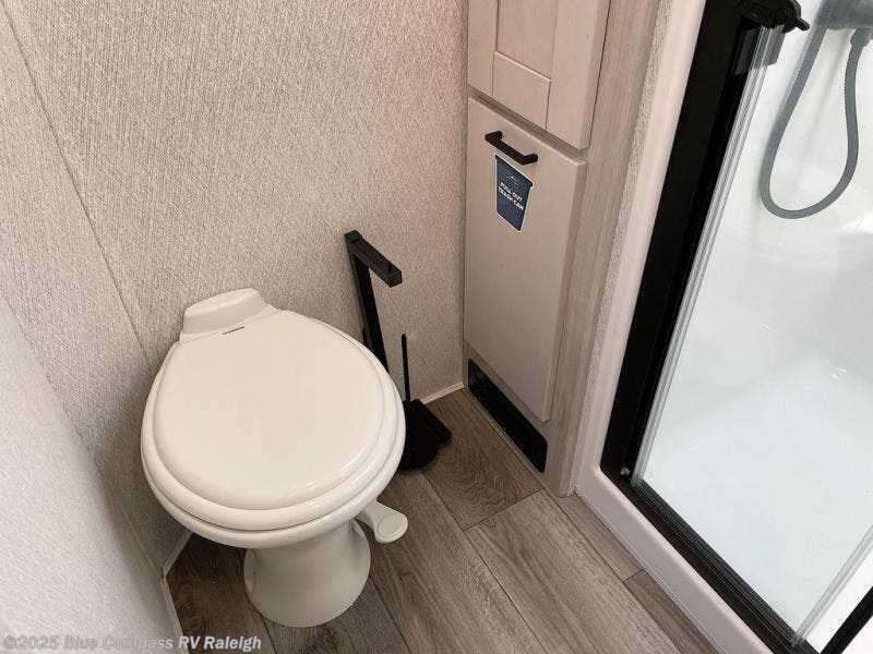 With any Blackthorn mid-profile fifth wheel by EAST TO WEST, you will find luxury amenities at every turn! There is Radiant Technology Composites insulation in the roof, front cap and underbelly, plus Azdel laminated sidewalls with block foam insulation for 4-seasons camping! You will love how easy it will be to tow your fifth wheel with Dexter axles and a MORryde CRE 3000 suspension, and the electric automatic leveling system means you can set up camp in no-time! The exterior also includes an adjustable power awning with LED lights, LED motion sensor lights in the pass-through storage, and a universal all-in-one docking station to easily manage your units tank levels and functions. Head inside to find vinyl flooring, solid wood shaker style cabinet doors with hidden hinges, a seamless fiberglass shower, and many more elegant features!