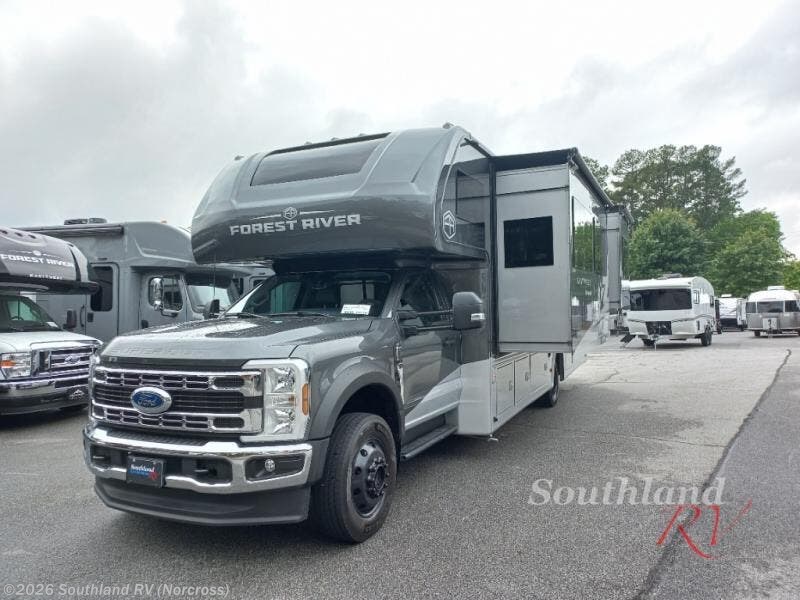 The Bravado Super C diesel motorhome by EAST TO WEST is packed with amenities that will let you travel boldly and confidently. There is a Ford F600 4x4 chassis, 6.7L PowerStroke V8 engine, and 10 speed SelectShift automatic transmission for the ultimate driving experience. You'll stay comfortable with the 15K main A/C and 13.5K second A/C, plus there is an 8K Cummins Onan generator to meet your power needs. The interior comforts are endless and the exterior conveniences will make life on the road hassle-free. Choose the Bravado today and you won't be disappointed!
