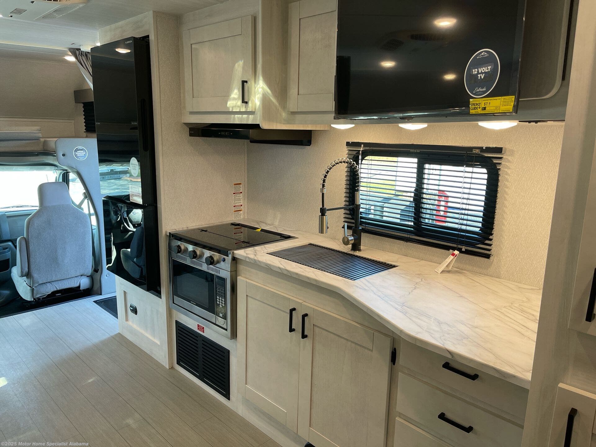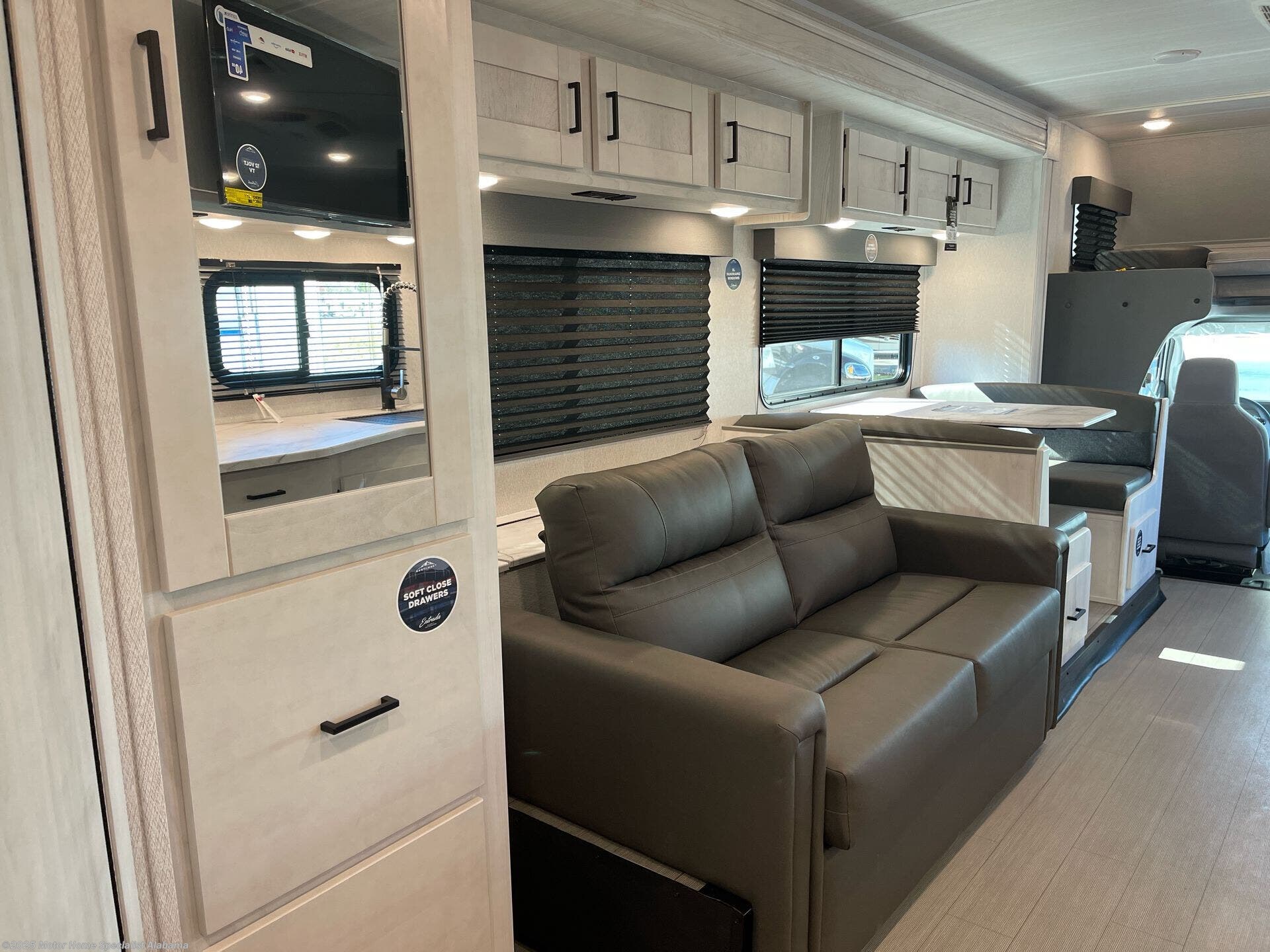 About This RVYou can explore and discover so many new destinations with this Entrada Class C gas motorhome! The first thing that you'll notice about this coach is that it has extra interior living space because of the two slides. One of those slides holds the queen-size bed back in the private bedroom, and the bedroom is sectioned off from the rest of the coach with an accordion door. The full bathroom is right next to the bedroom so that you can quickly and effortlessly hop in the shower each morning. Outside of the bathroom, you'll find a linen closet which can hold your towels or toiletries, and the kitchen pantry can hold your snacks. This coach even has an LED TV for inside entertainment, so you can sit back on the sofa or booth dinette and watch with pleasure. With any Entrada Class C gas motorhome from EAST TO WEST, the construction consists of a completely laminated coach, a one-piece molded fiberglass front cap, 2" thick sidewalls with Azdel composite exterior, a Dicor Diflex ll TPO roof, and integrated entry step. Some of the Entrada value package features include 12V tank heaters to camp during the cooler months, the Winegard Air 360+, plus backup and sideview cameras with monitor for safety on and off the road. The interior offers a 7-foot interior height for a spacious feel, and hardwood shaker style cabinets. Choose an Entrada for its tasteful design, attention to detail, bright interior and/or affordable price-point!