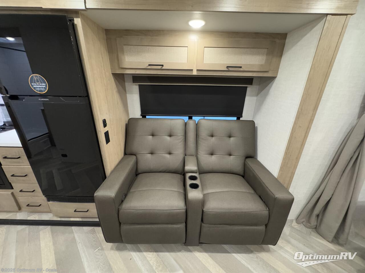 Camping trips just got a whole lot better in this tandem axle, single slide travel trailer! Once you arrive at the campground, you can put out the 18' power awning, grab your camp chairs from the pass-through storage, and relax! When you're getting hungry, head to the rear corner kitchen that includes ample counter space, a two burner cooktop, plus a 10 cu. ft. 12V refrigerator. There is also a pantry to store snacks and paper goods! You can get cozy after dinner on the theater seating that sits directly across from the HDTV for easy viewing, and there is a legless dinette if game night is in order. When you're ready for bed, the queen bed up front will provide a great night's rest, and there is a privacy curtain if you have a guest staying over on the dinette. And don't worry about storage space; this model has you covered with dual bedroom wardrobes, overhead cabinets, and convenient shoe storage!