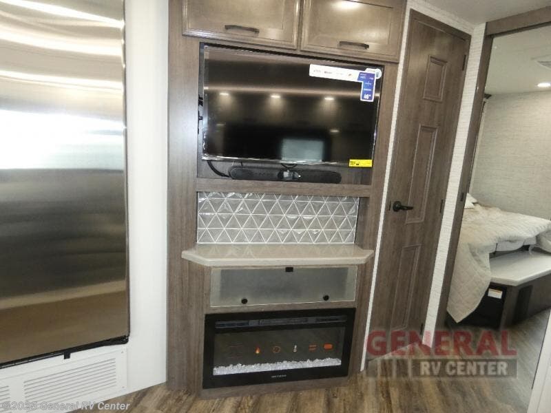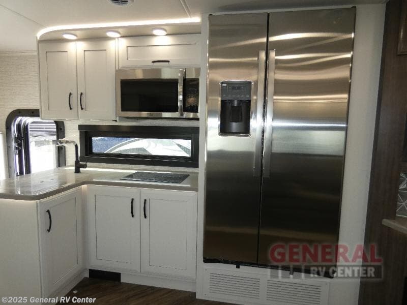 Get ready for fun adventures in this double slide out coach! Once you arrive at your destination, set up the 17' power awning with LED lights and watch the big game on the exterior LED Smart TV. You'll find plenty of seating spaces in the main living area on the 93" reclining sofa or at the booth dinette, plus there is a fireplace here and an LED HD Smart TV. The kitchen is any chef's dream with its residential refrigerator, two burner induction cooktop, and residential-size convection microwave. This model also includes a bath and a half that will come in handy when traveling with friends and family, and don't overlook the master bedroom with a power head lift king bed slide, large wardrobes, and an LED Smart TV!
