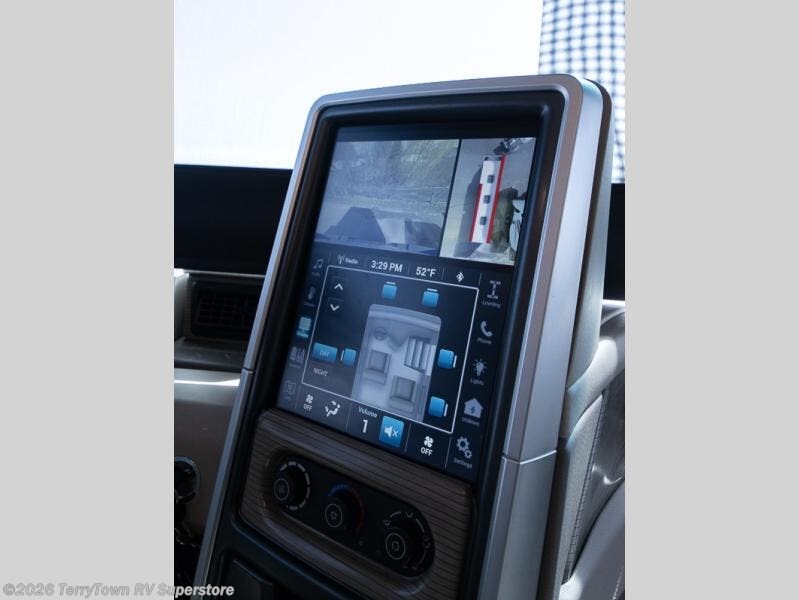 With any Anthem Class A diesel motorhome by Entegra Coach, setting up camp has never been easier with the 15-inch digital dash displaying an integrated 360-degree surround view system with fourteen smart radar sensors and six HD cameras plus the Valid air leveling system. Each roof is constructed with arched aluminum trusses filled with batt insulation and reflective Flexfoil topped with plywood decking then one-piece fiberglass, exterior walls with Aluma-Tru welded tubular aluminum studs, insulated front and rear caps, and X-Bridge bracing welded into the chassis frame. The interior provides the Firefly multiplex system with 10-inch VegaTouch touchscreen for complete integration of the coach controls with remote monitoring and control from the available mobile app, a decorative ceiling feature with integrated accent lighting, powered solar day and blackout night shades, a central vacuum system, and Aire-Secure travel locks for all pocket doors to mention a few luxury, stylish and convenient features. So why not experience the best trip each and every time, choose an Anthem today!