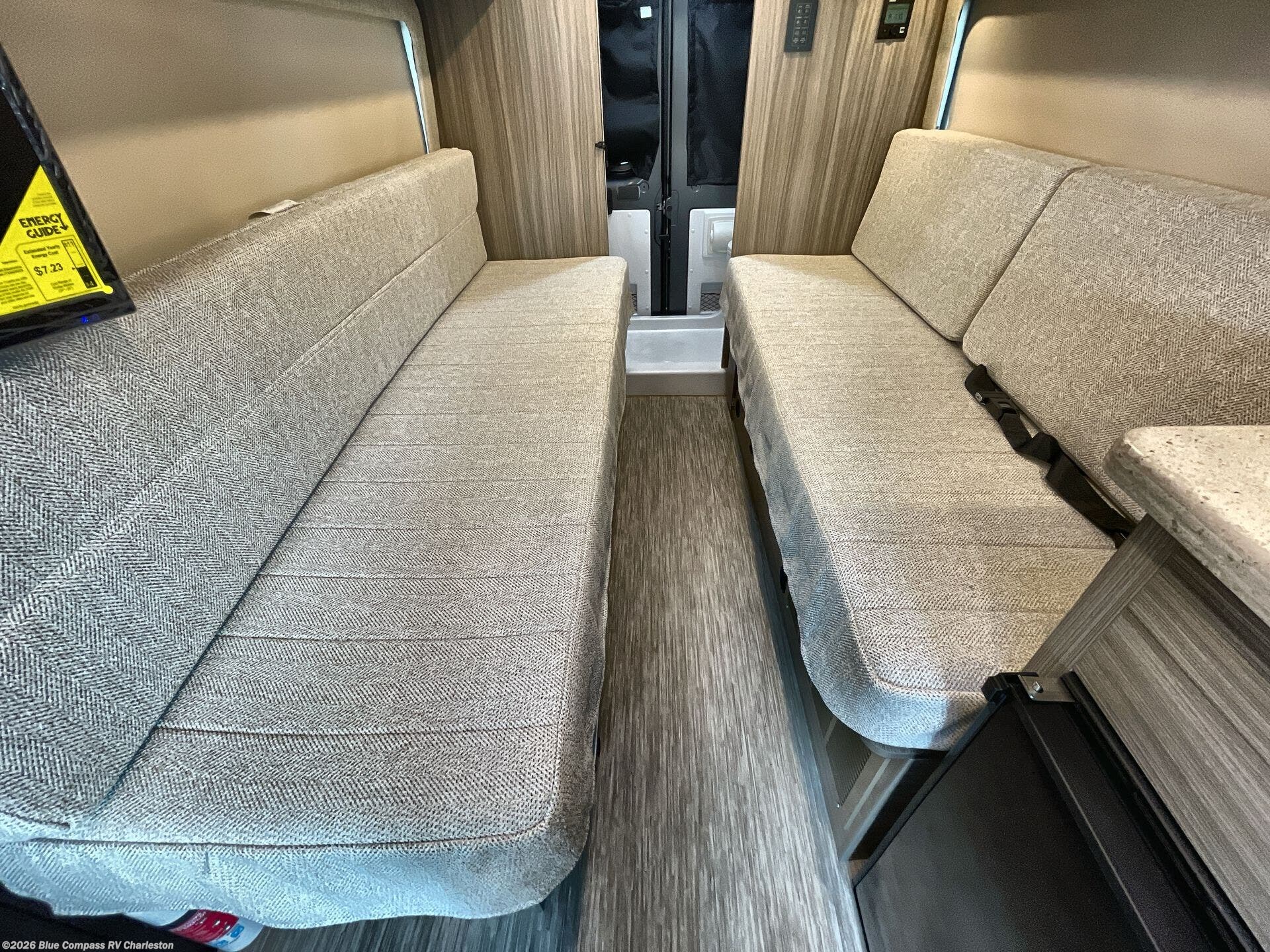 Your trek across country is made comfortable in this coach for two. You can swivel the captains seats around when you get to your destination, or head outdoors to sit under the 13' Thule armless awning with LED lights. The pull-out table indoors will provide a space for your coffee in the morning, while breakfast is being cooked in the convection microwave or on the two burner cooktop. A rear wet bath will allow you to stay clean throughout your trip, and you'll find plenty of storage space for your belongings. You'll love the versatile sleeping arrangements in this model that includes twin-size beds with a filler cushion that converts to a king-size bed, plus there is under-bed storage for your luggage. The optional Li Package can also be added which features a 48V-165 amp hour smart lithium battery, providing 7.9KW hours of power, and more; see dealer for more details!