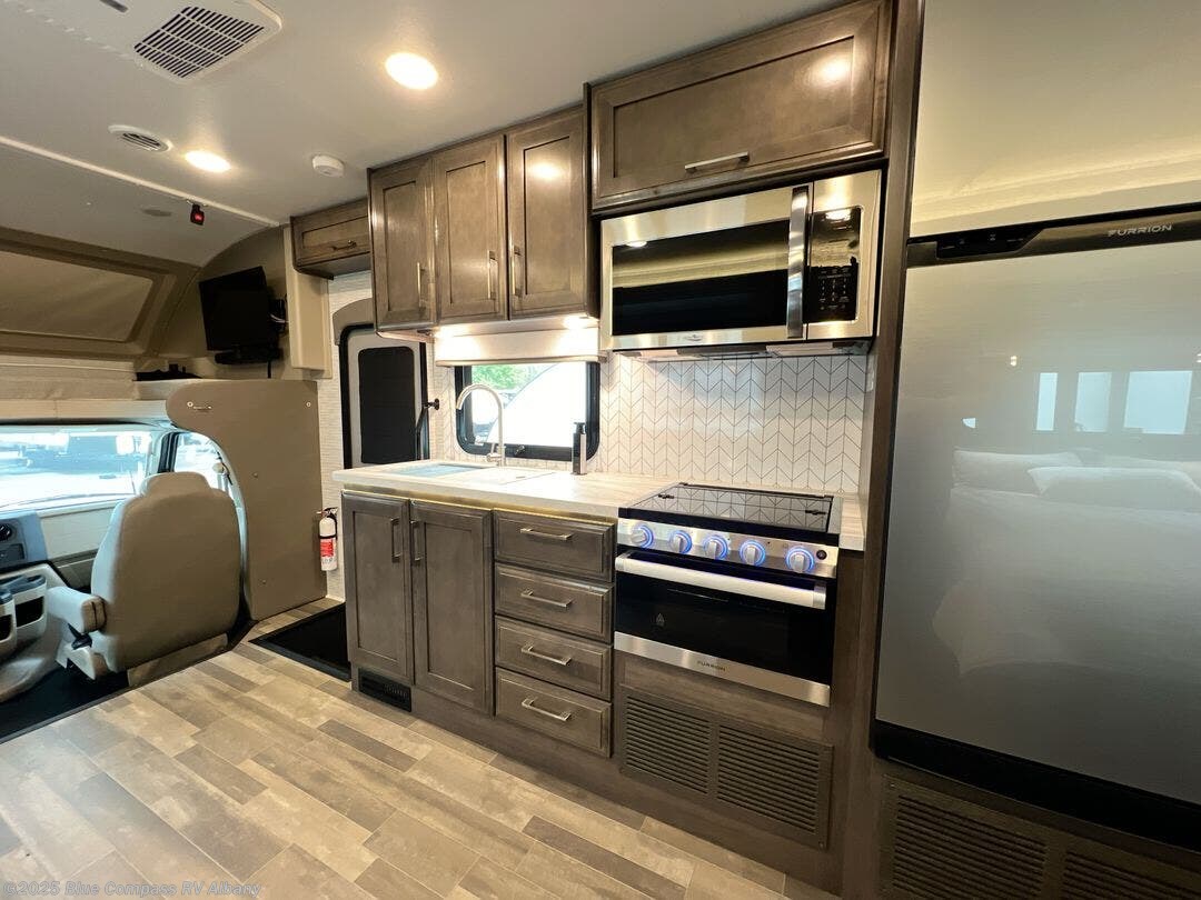 With any Odyssey Class C gas motorhome by Entegra Coach, the driver will appreciate the power from the 325 HP engine, the towing capacity from the 7,500 lb. hitch, the tire pressure monitoring system, the navigation from the Sony infotainment center with Apple CarPlay and Android Auto, plus the backup and side-view cameras when parking and driving down the highway. The kitchen offers full amenities including a recessed stainless steel sink with a cutting board sink cover, LED-lit countertops, a decorative backsplash, and a pop-up charging station with 110 outlet and USB plugs to keep your smart phones charged. Get ready for luxury in a Class C, choose your favorite today!