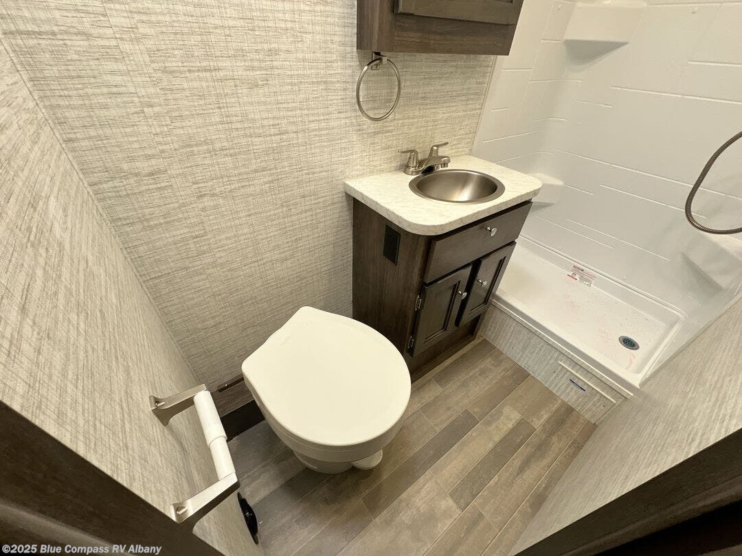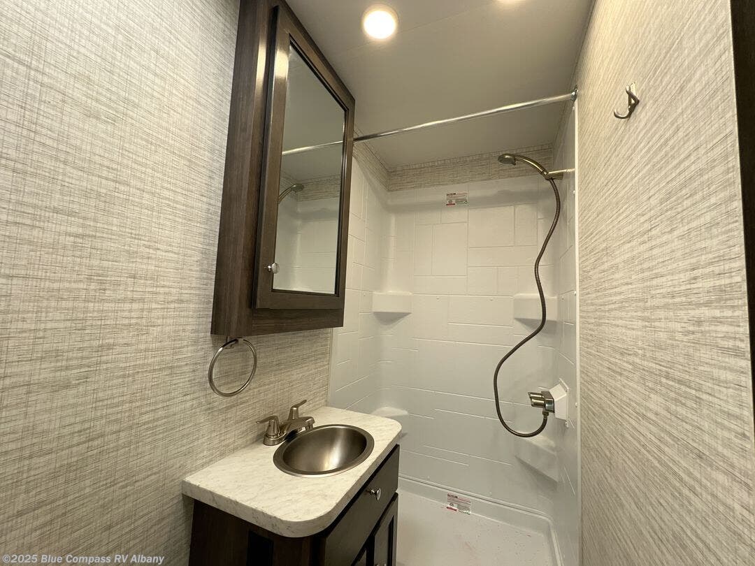 Make your trips complete in this coach that can sleep four to five each night. There is a cab-over bunk with a 750 lb. capacity for guests and an RV queen bed slide out in the rear corner bedroom. The booth dinette can be used to dine at, play games, and even sleep an additional guest or two little ones. A two burner cooktop comes standard in the kitchen, along with a convection microwave, a stainless steel sink, and a 10 cu. ft. refrigerator. You will also appreciate having a full bath on board, and the 13' electric awning outside will provide a place to relax with a cold drink!