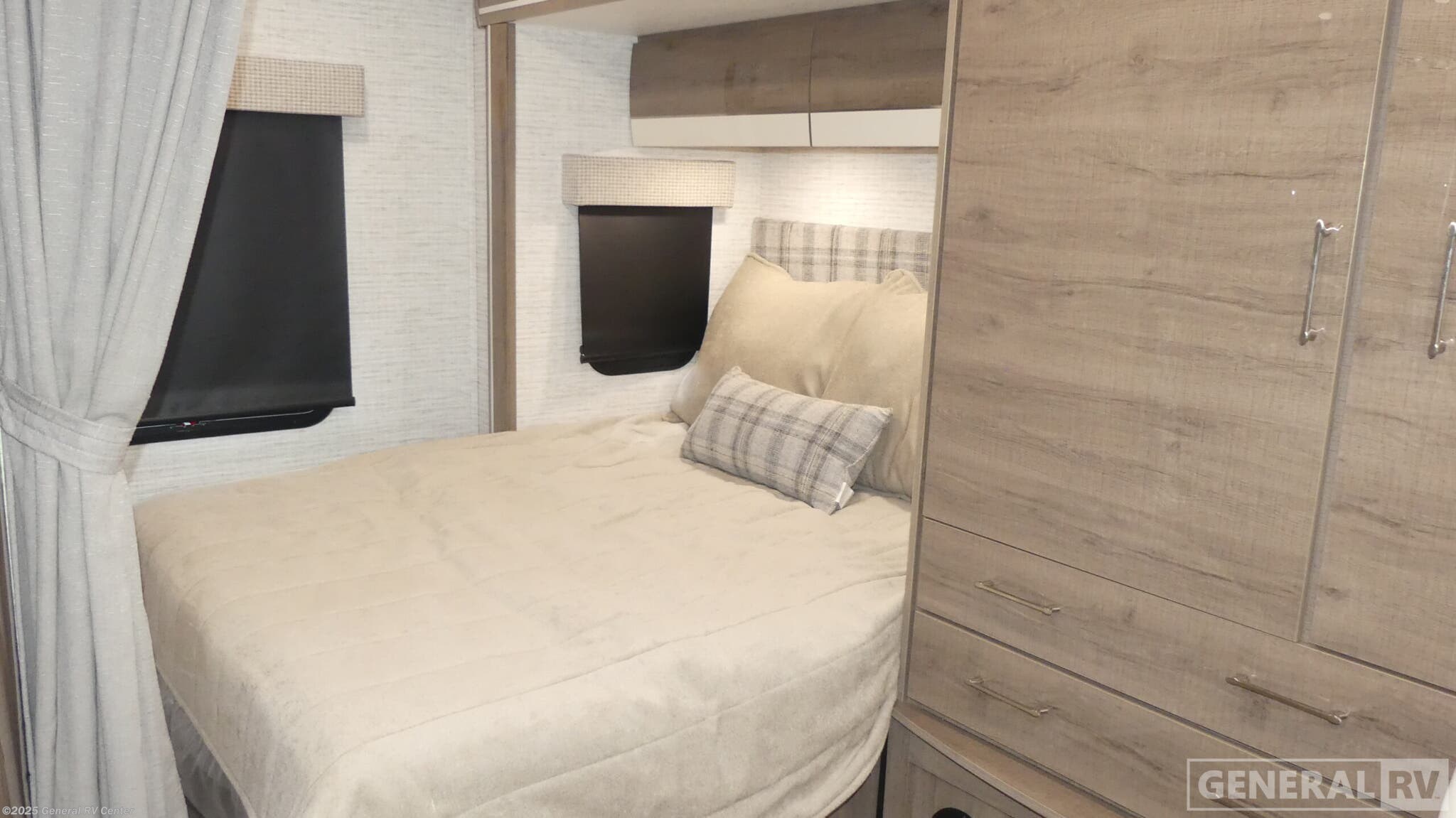 Experience the ultimate in luxury and convenience with the 2025 Entegra Coach Qwest 24L. Built on the robust Mercedes-Benz Sprinter 3500 chassis, this RV combines elegance with performance, boasting a powerful engine that delivers 211 horsepower and 332 lb-ft of torque. Its sleek 25-foot design hides a spacious interior, where every inch is optimized for comfort. The front living area invites you to relax with a cozy U-dinette that easily converts into an additional sleeping space, perfect for family or guests. The heart of the Qwest 24L is its well-appointed center kitchen, featuring a two-burner cooktop and convection cooking capabilities. The mid-size refrigerator running on electric or propane ensures your culinary adventures are never limited. Retreat to the rear, where a plush queen bed awaits, offering a private oasis for restful nights. The rear bath, equipped with a 24" x 32" shower, ensures you have all the comforts of home on the road. With a 14-foot powered retractable awning, you can extend your living space outdoors, creating the perfect setting for enjoying scenic views. For more details or to see this beauty in person, visit your nearest General RV dealership.