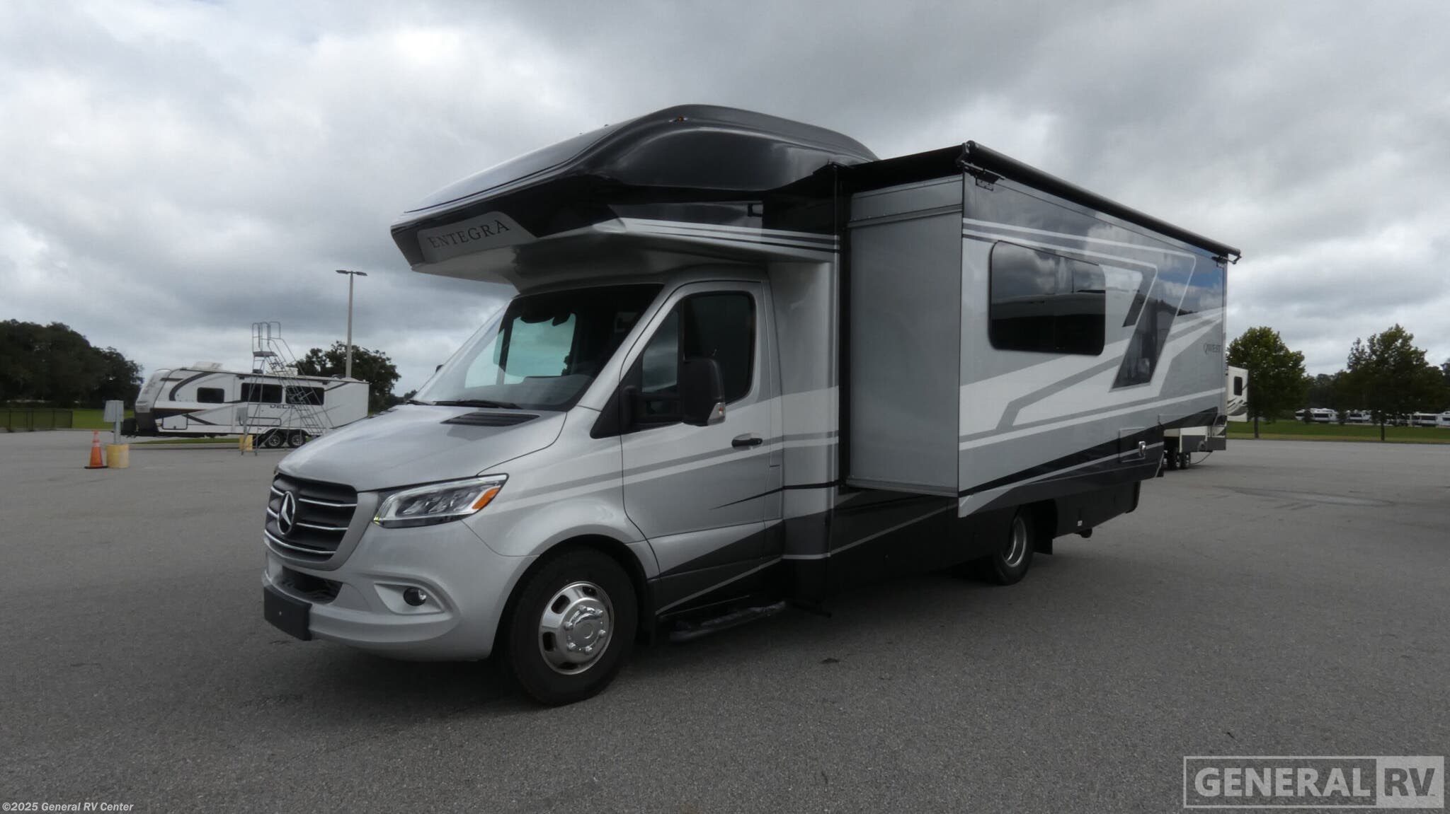 Experience the ultimate in luxury and convenience with the 2025 Entegra Coach Qwest 24L. Built on the robust Mercedes-Benz Sprinter 3500 chassis, this RV combines elegance with performance, boasting a powerful engine that delivers 211 horsepower and 332 lb-ft of torque. Its sleek 25-foot design hides a spacious interior, where every inch is optimized for comfort. The front living area invites you to relax with a cozy U-dinette that easily converts into an additional sleeping space, perfect for family or guests. The heart of the Qwest 24L is its well-appointed center kitchen, featuring a two-burner cooktop and convection cooking capabilities. The mid-size refrigerator running on electric or propane ensures your culinary adventures are never limited. Retreat to the rear, where a plush queen bed awaits, offering a private oasis for restful nights. The rear bath, equipped with a 24" x 32" shower, ensures you have all the comforts of home on the road. With a 14-foot powered retractable awning, you can extend your living space outdoors, creating the perfect setting for enjoying scenic views. For more details or to see this beauty in person, visit your nearest General RV dealership.