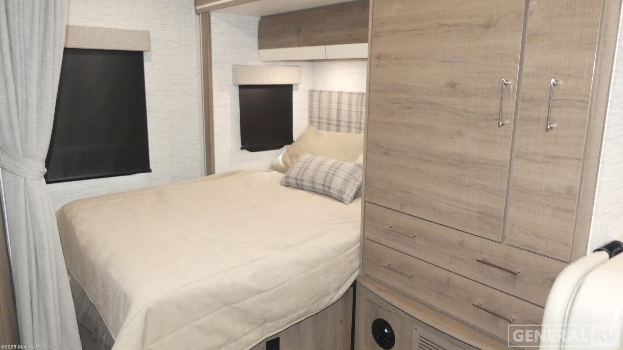 Experience the ultimate in luxury and convenience with the 2025 Entegra Coach Qwest 24L. Built on the robust Mercedes-Benz Sprinter 3500 chassis, this RV combines elegance with performance, boasting a powerful engine that delivers 211 horsepower and 332 lb-ft of torque. Its sleek 25-foot design hides a spacious interior, where every inch is optimized for comfort. The front living area invites you to relax with a cozy U-dinette that easily converts into an additional sleeping space, perfect for family or guests. The heart of the Qwest 24L is its well-appointed center kitchen, featuring a two-burner cooktop and convection cooking capabilities. The mid-size refrigerator running on electric or propane ensures your culinary adventures are never limited. Retreat to the rear, where a plush queen bed awaits, offering a private oasis for restful nights. The rear bath, equipped with a 24" x 32" shower, ensures you have all the comforts of home on the road. With a 14-foot powered retractable awning, you can extend your living space outdoors, creating the perfect setting for enjoying scenic views. For more details or to see this beauty in person, visit your nearest General RV dealership.