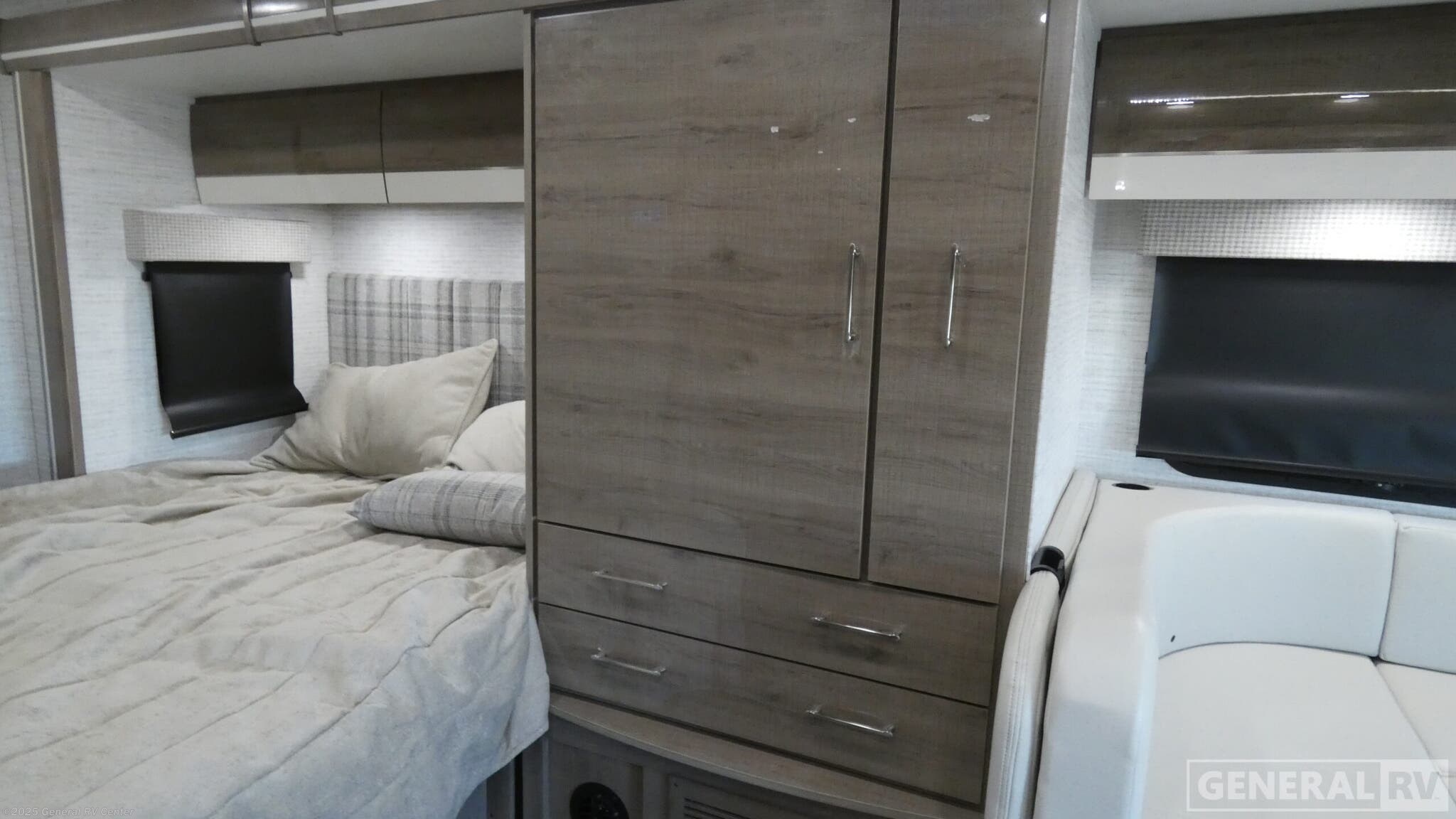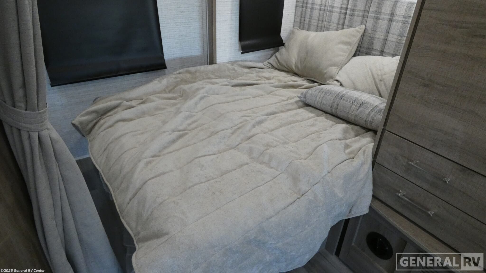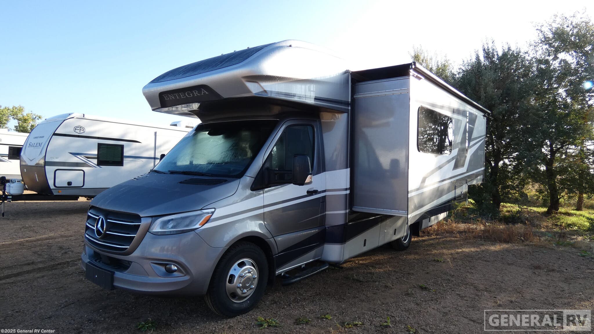 Experience the ultimate in luxury and convenience with the 2025 Entegra Coach Qwest 24L. Built on the robust Mercedes-Benz Sprinter 3500 chassis, this RV combines elegance with performance, boasting a powerful engine that delivers 211 horsepower and 332 lb-ft of torque. Its sleek 25-foot design hides a spacious interior, where every inch is optimized for comfort. The front living area invites you to relax with a cozy U-dinette that easily converts into an additional sleeping space, perfect for family or guests. The heart of the Qwest 24L is its well-appointed center kitchen, featuring a two-burner cooktop and convection cooking capabilities. The mid-size refrigerator running on electric or propane ensures your culinary adventures are never limited. Retreat to the rear, where a plush queen bed awaits, offering a private oasis for restful nights. The rear bath, equipped with a 24" x 32" shower, ensures you have all the comforts of home on the road. With a 14-foot powered retractable awning, you can extend your living space outdoors, creating the perfect setting for enjoying scenic views. For more details or to see this beauty in person, visit your nearest General RV dealership.