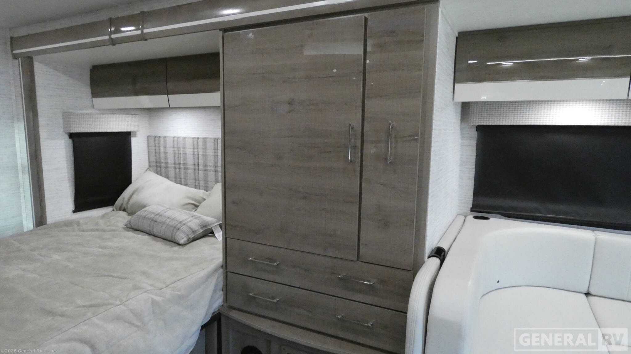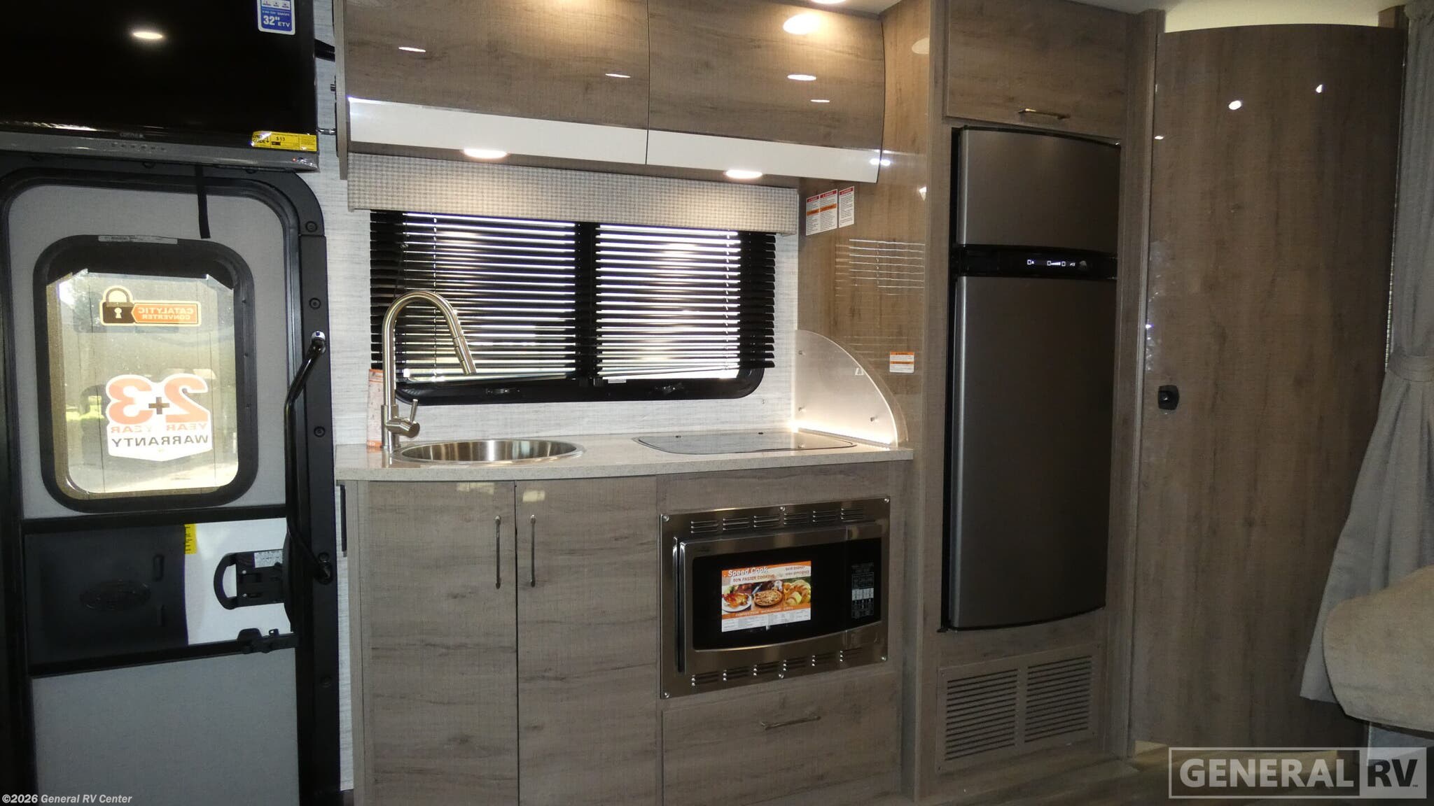 Experience the ultimate in luxury and convenience with the 2025 Entegra Coach Qwest 24L. Built on the robust Mercedes-Benz Sprinter 3500 chassis, this RV combines elegance with performance, boasting a powerful engine that delivers 211 horsepower and 332 lb-ft of torque. Its sleek 25-foot design hides a spacious interior, where every inch is optimized for comfort. The front living area invites you to relax with a cozy U-dinette that easily converts into an additional sleeping space, perfect for family or guests. The heart of the Qwest 24L is its well-appointed center kitchen, featuring a two-burner cooktop and convection cooking capabilities. The mid-size refrigerator running on electric or propane ensures your culinary adventures are never limited. Retreat to the rear, where a plush queen bed awaits, offering a private oasis for restful nights. The rear bath, equipped with a 24" x 32" shower, ensures you have all the comforts of home on the road. With a 14-foot powered retractable awning, you can extend your living space outdoors, creating the perfect setting for enjoying scenic views. For more details or to see this beauty in person, visit your nearest General RV dealership.