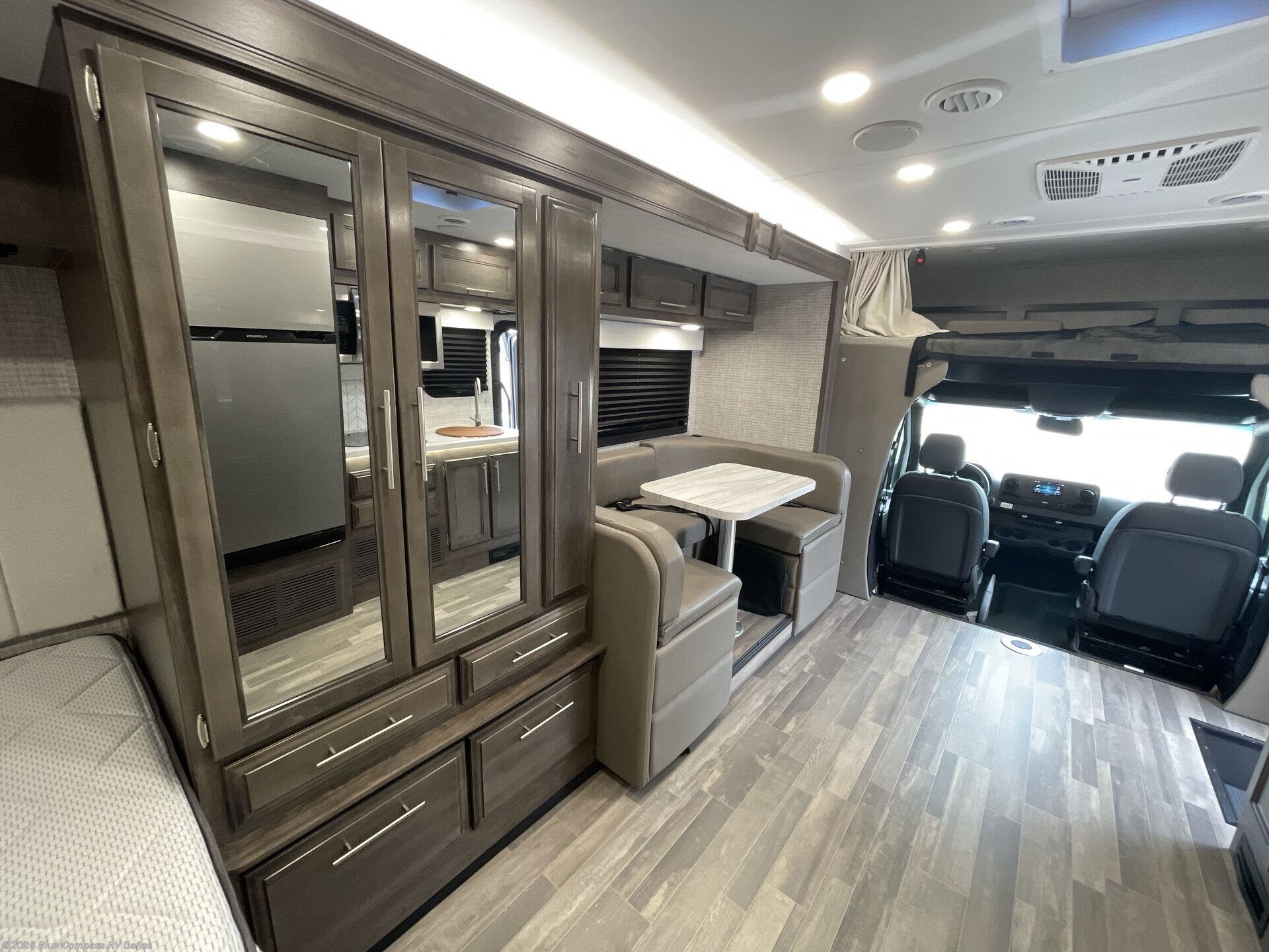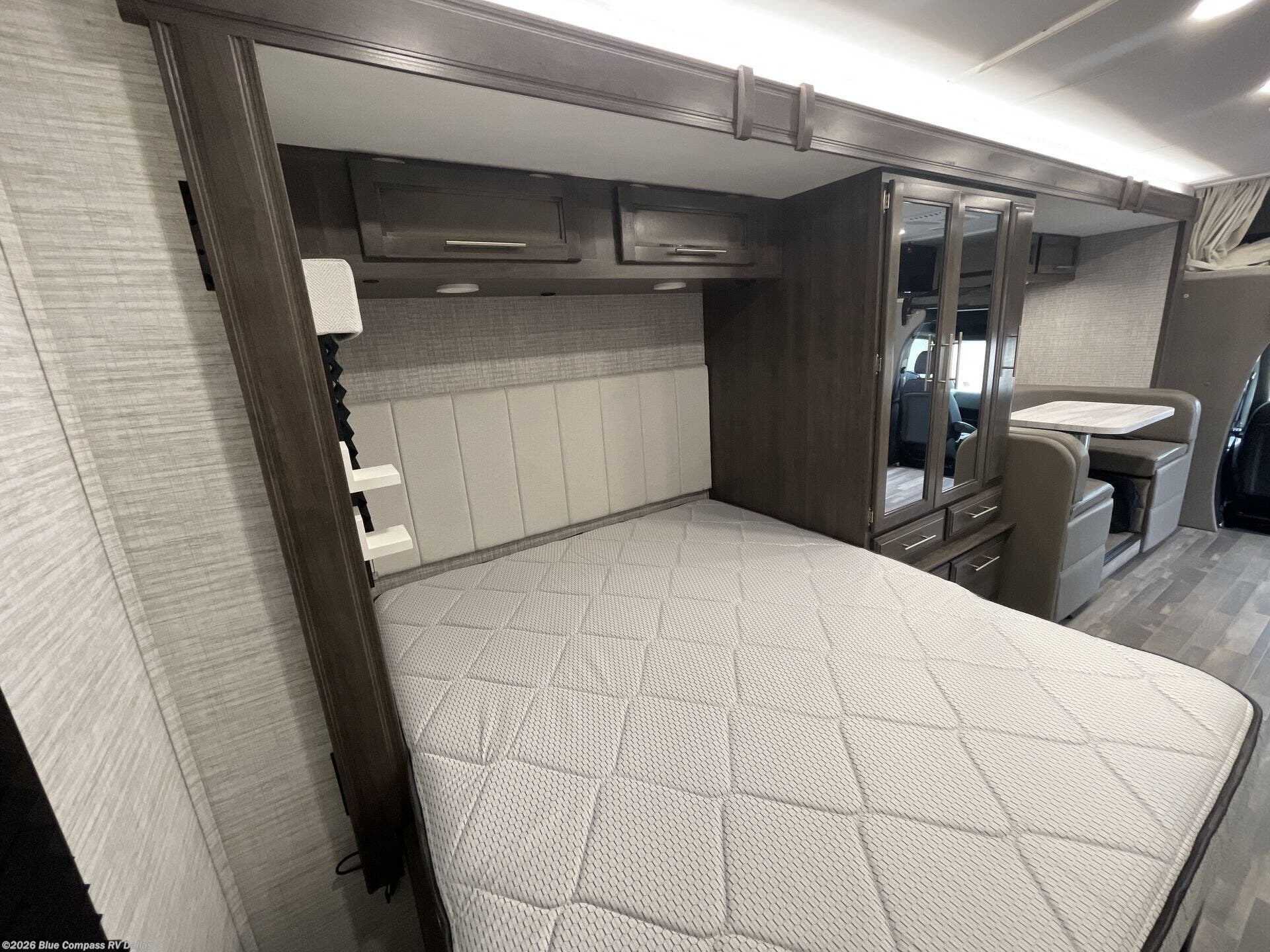 The Entegra Coach Qwest Class C diesel motorhome is built upon a premium Mercedes-Benz 3500 chassis with a 2.0L inline 4-cylinder twin turbo 211HP diesel engine to power your trips near and far. Each model is constructed with TuffShell vacuum-bond laminated sidewalls, premium Sikkens full-body paint, and bead-foam insulation for added protection. Navigate like a pro with the 10.25 inch integrated Mercedes-Benz infotainment center, and you are sure to stay comfortable in the leatherette captain's seats. Some of the interior comforts you will enjoy with the Qwest are the Tecnoform high-gloss countertops, the large bedroom wardrobes, and the day/night roller shades. And we didn't even mention the convenient exterior features, like the Girard armless awning with LED lights, the outside shower, and the exterior utility center.