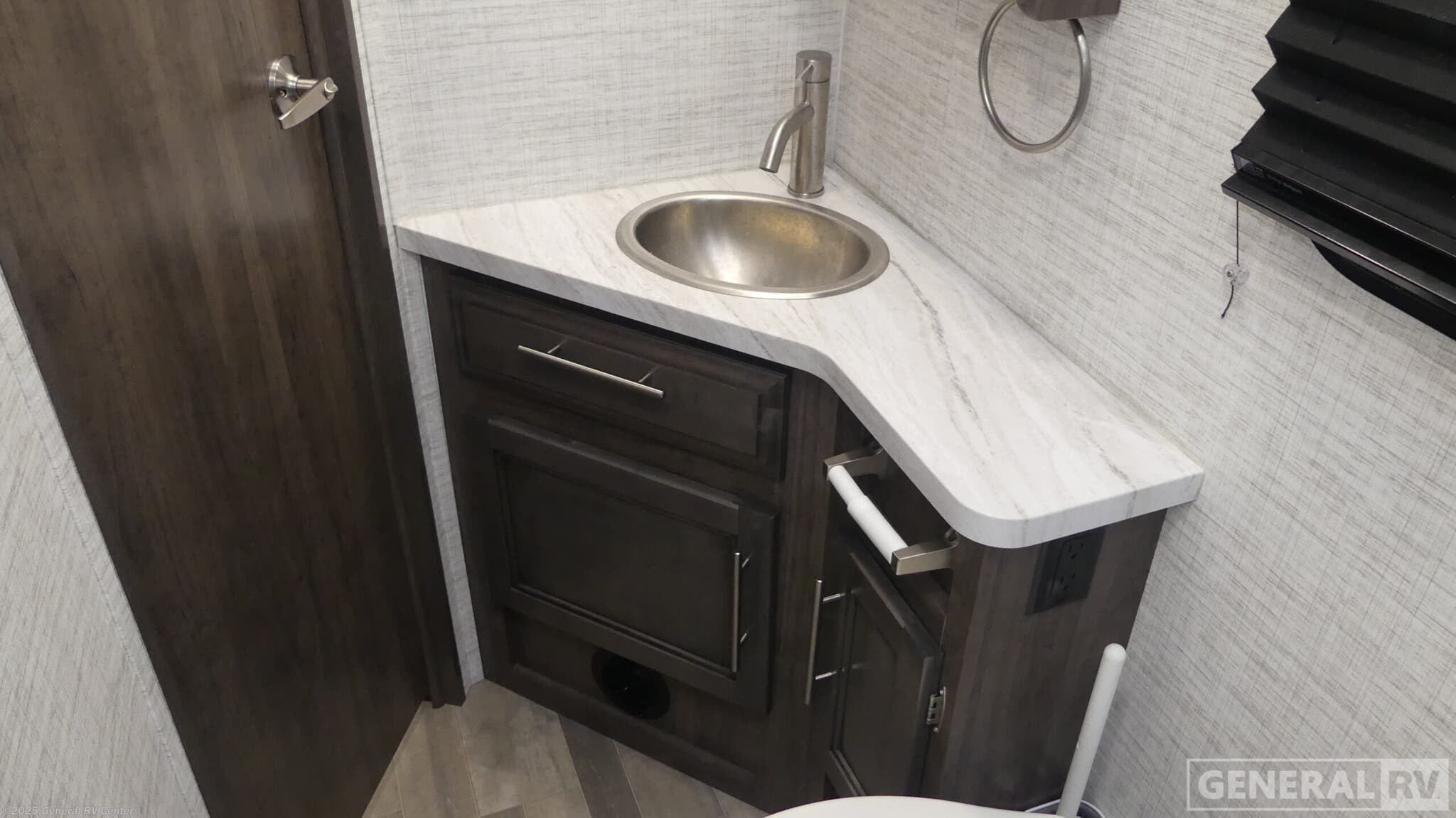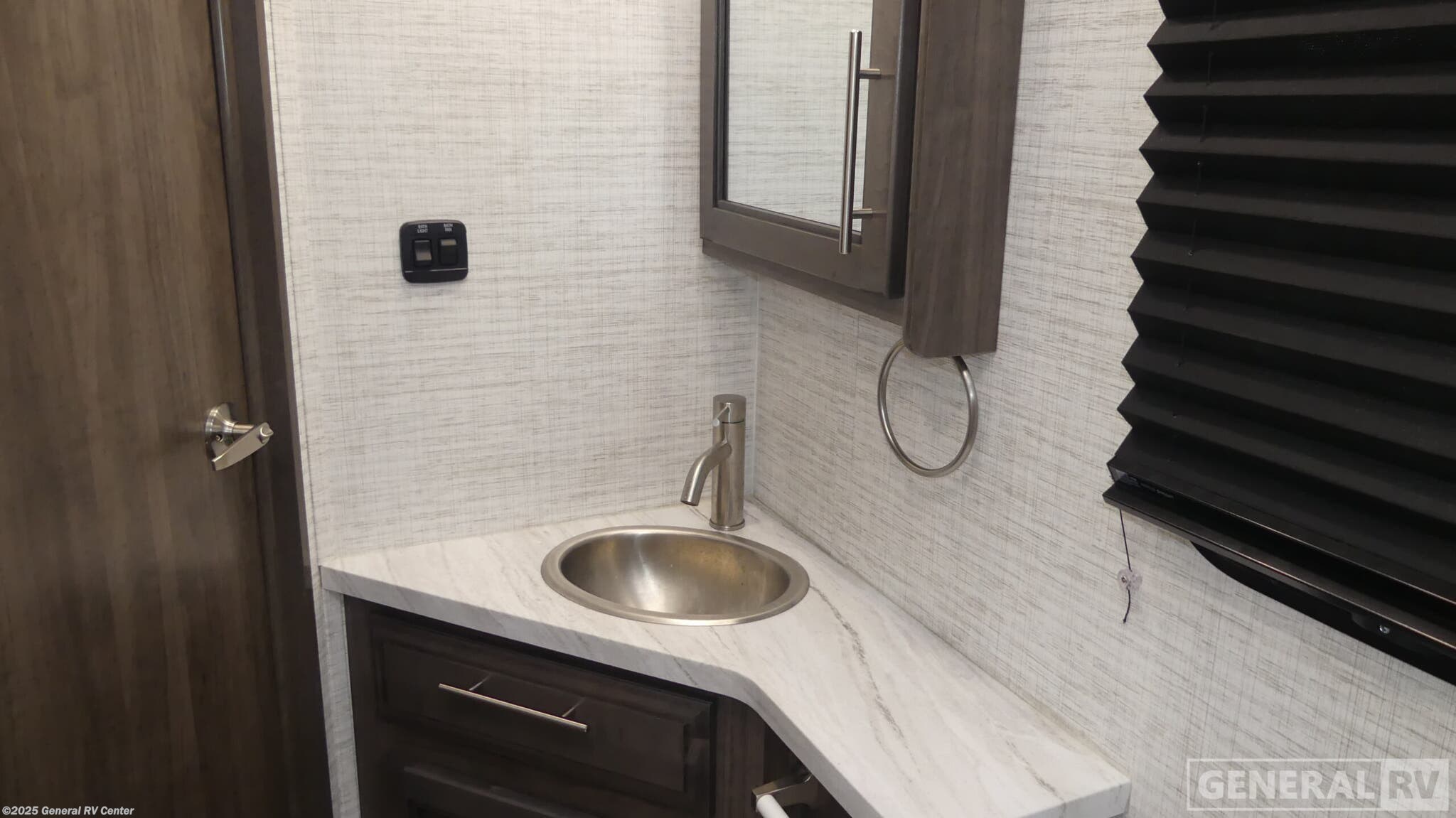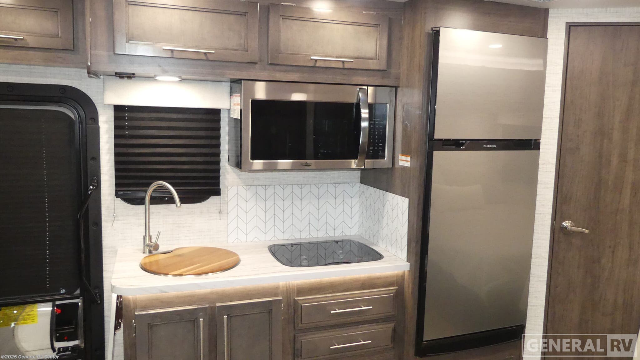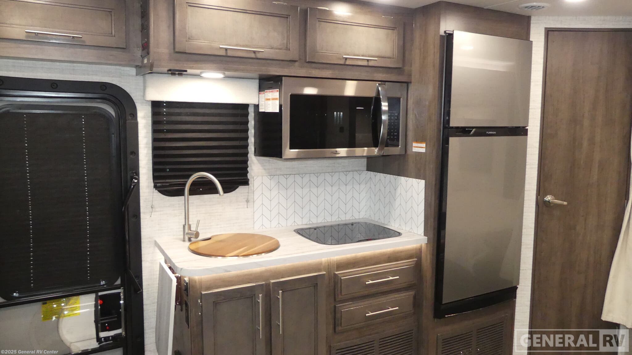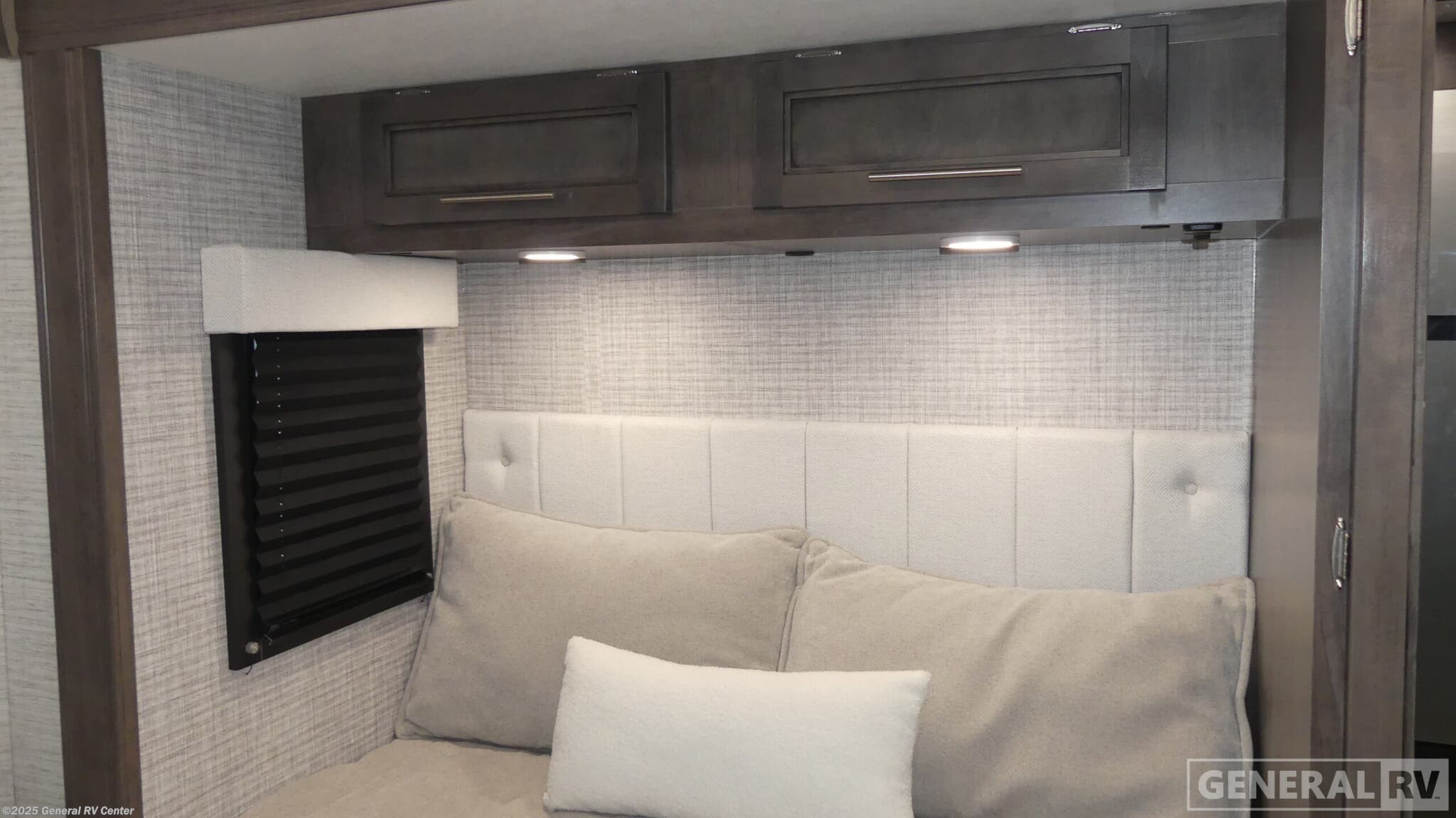 Entegra Coach Qwest SE Class C diesel motorhome 24L highlights: Full-Wall Slide Flip-Up Counter Kitchen Pantry Swivel Captain's Seats LED HD Smart TV Pack your bags and head to your favorite camping destination in this cozy coach! You can sleep four to six between the RV queen bed, U-shaped dinette, and overhead bunk with a 750 lb. capacity. You can prepare meals each day on the two burner drop-in cooktop or in the convection microwave, and there is a 10 cu. ft. 12V refrigerator for perishables. A full bath, complete with a foot flush toilet, powered roof vent, and shower skylight will let you stay clean throughout each trip. You will also find plenty of storage space, including a wardrobe by the bed, a pantry, plus overhead cabinets! With any Qwest SE Class C diesel motorhome by Entegra Coach, you will enjoy a safe and enjoyable trip each time you take to the road! Each model sits on a durable Mercedes-Benz 3500 chassis with a 170 in. wheelbase and a 9-speed automatic transmission for an overall better driving experience. There is a one-piece, seamless fiberglass front cap to combat leaks, and the TuffShell construction will hold up over time. The driver will appreciate the 7" integrated Mercedes-Benz MBUX infotainment center that includes Apple CarPlay and Android Auto so they can navigate the road like a pro, plus there are backup and side-view cameras for easy parking. You will also appreciate an exterior utility center, an outside shower, electric stabilizer jacks, and many more exterior conveniences. Head inside to find LED-lit pressed countertops, decorative kitchen backsplash, pleated blackout shades for added privacy, and high-intensity LED ceiling lights to keep your space bright and open.