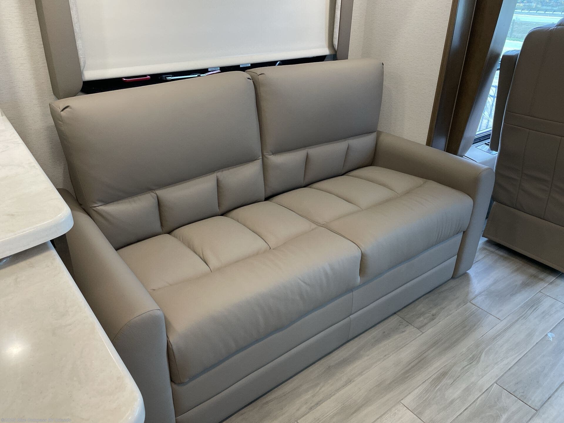 You can comfortably sleep seven to eight people in this spacious coach thanks to the power bunk beds across from the half bath, the power head lift king bed, plus the tri-fold sofa and booth dinette within the main living area. If you have more guests, then you can add the optional drop-down overhead bunk! You'll find the full rear bath to be convenient with its large linen closet and separate washer and dryer, plus there is a one-piece fiberglass shower with a skylight for more standing space. The chef of your group will love cooking in this Reatta XL kitchen that includes a two burner induction cooktop, a convection microwave oven, plus a plenty of overhead cabinets and a pantry for snacks. Since there is a 50" Samsung 4K UHD Smart TV in the living area, you can make it a movie night, or head outdoors to relax under the Carefree power awnings!