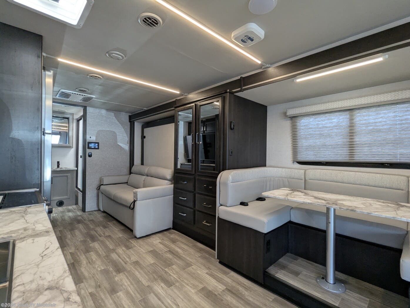 - Full-Wall Slide & Murphy Bed: Expansive living area with a queen Murphy bed that converts to a sofa, plus a U-shaped dinette for versatile seating and sleeping up to 6.