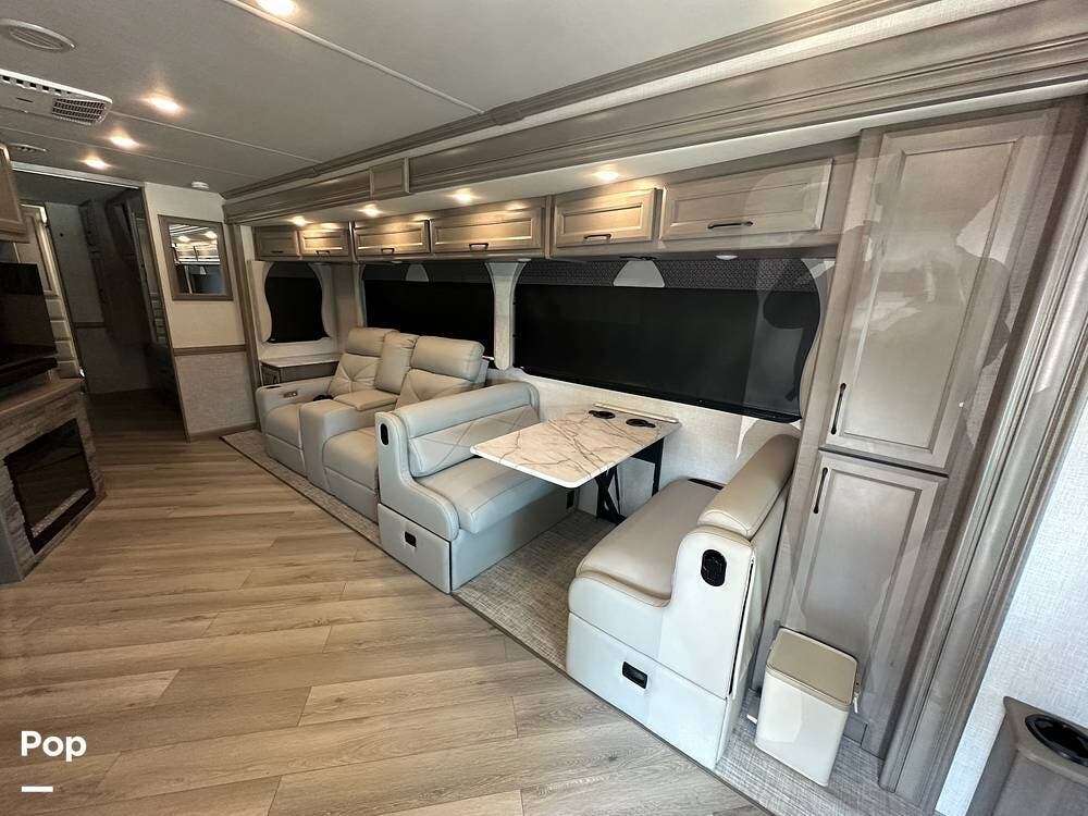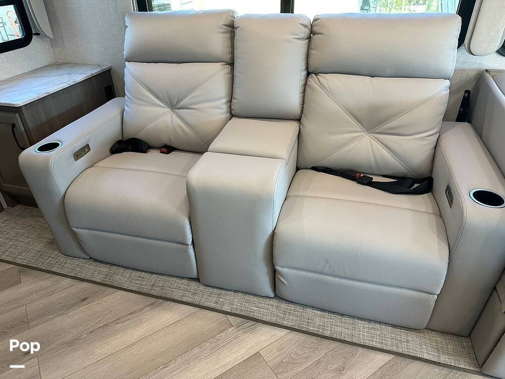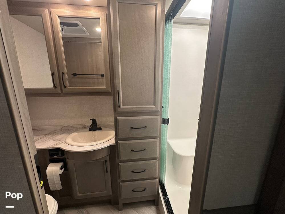 The exterior features full-body paint with a protective clear coat, ensuring durability and a polished look. A 16-foot power-retractable awning extends your living area outdoors.