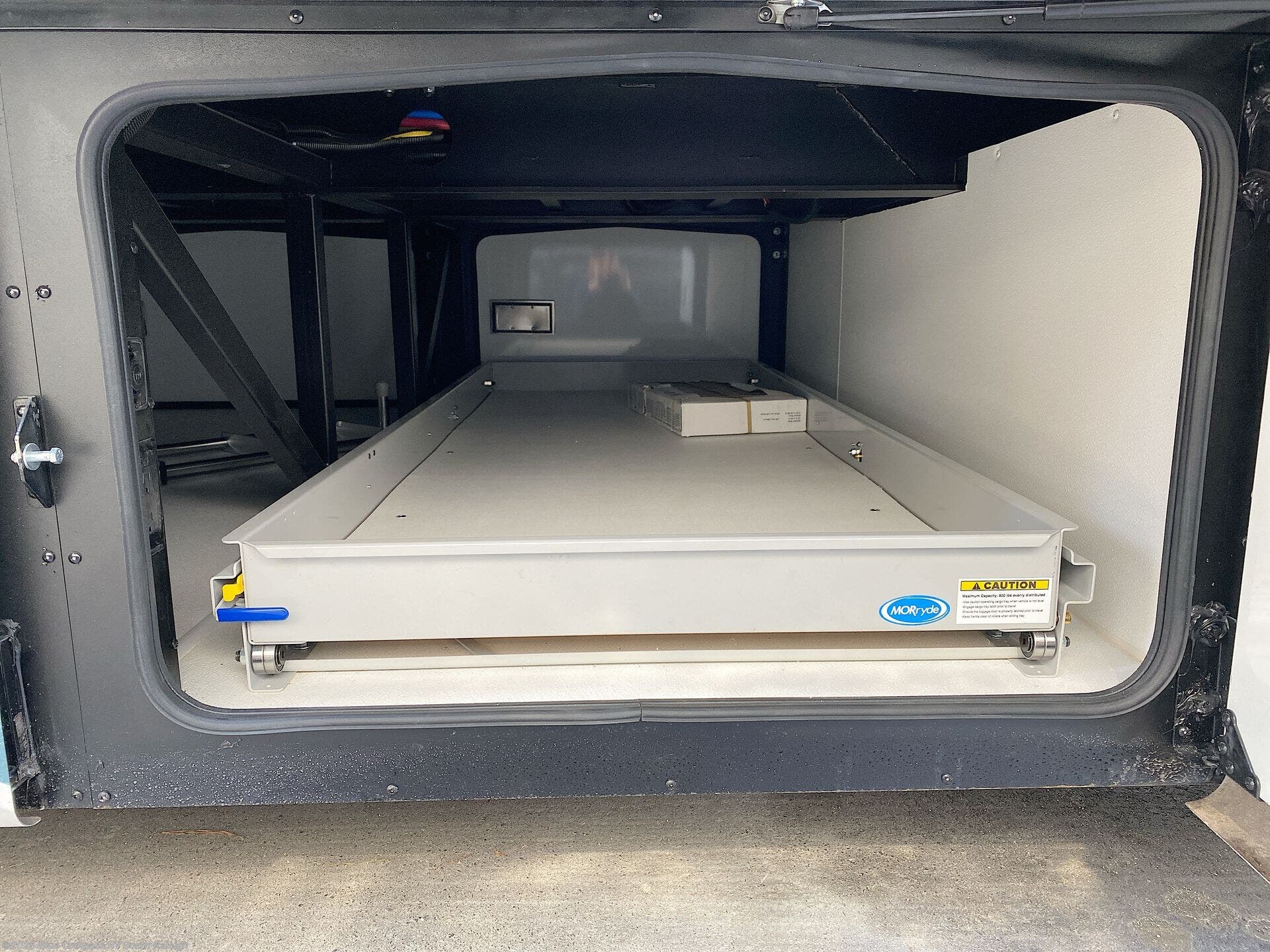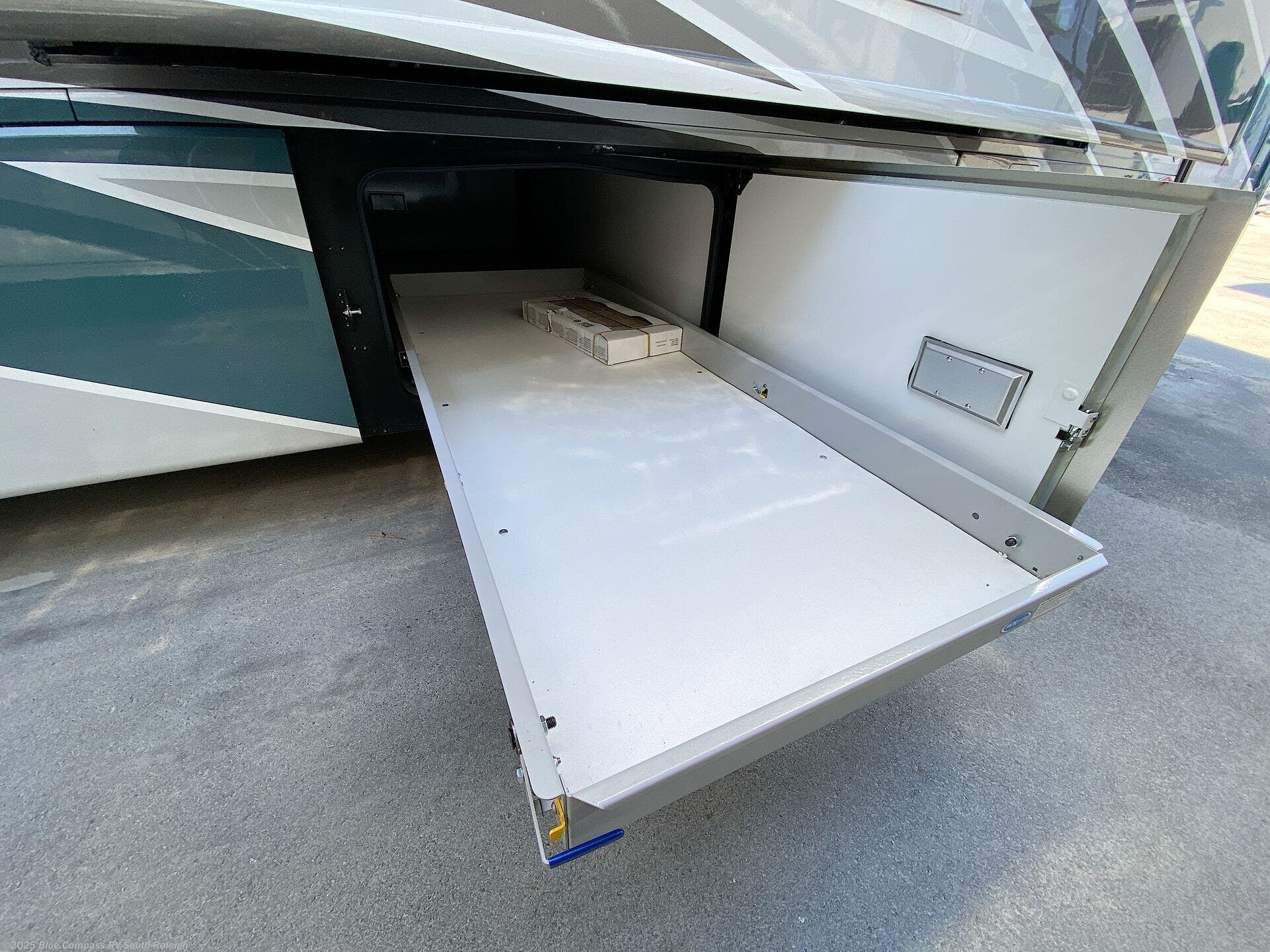 With any Fleetwood Discovery Class A diesel motorhome, the Freedom Bridge custom chassis, the V-Ride rear suspension, and the Cummins B6.7 engine offer a smooth and enjoyable ride to all your destinations. The construction also includes the Powerlock System with interlocking floor, walls and roof, heated fresh water and holding tank compartments, and a full coverage heavy duty undercoating. The interior cabin includes an LED OptiView instrument panel, an air suspension deflation system, and a 10.2" stereo touch screen with lots of functions making traveling easier. And you will love the style of the interior decor and cabinetry, energy efficient LED flush mount ceiling lighting, polished solid surface galley countertop with lighting, residential features throughout, and all the entertainment. Choose to travel and live better in a Discovery!