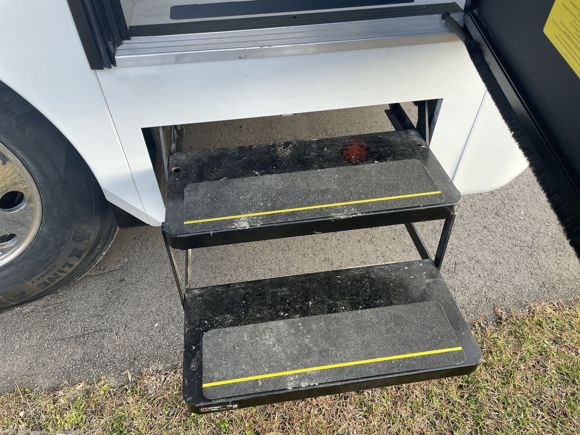 Trips across the country just got sweeter in this four slide out coach that can sleep nine people each night. The rear bunk beds can convert to a wardrobe, and there additional storage here for clothes and belongings. The master bedroom features a LED TV, a side-by-side washer and dryer, and a luxurious Encore Series king bed. This Discovery LXE includes everything you need each day to prepare meals for your crew, including a two burner induction cooktop, a convection microwave, plus a residential refrigerator with ice and water in the door. There are plenty of seating spaces to enjoy, including a U-shaped dinette, a sofa sleeper with a pull-out queen bed, and a sofa with ottomans!