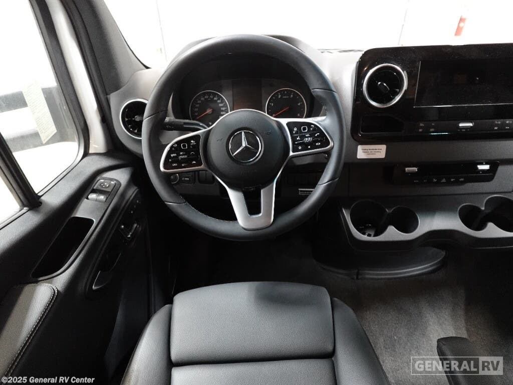 Experience the perfect blend of comfort and convenience with the 2025 Fleetwood Insight 25M. This charming RV, built on the robust Mercedes-Benz Sprinter 3500 chassis, offers a smooth ride powered by a reliable diesel engine. With a length of 25.5 feet, it's compact enough for easy maneuverability while providing ample space for your adventures. Inside, you'll find a thoughtfully designed floorplan featuring a front living area with a cozy reclining loveseat and a removable table, perfect for dining or relaxing. The center kitchen is equipped with a mid-size electric refrigerator and a two-burner cooktop, making meal prep a breeze. The rear bath ensures privacy and convenience, while the sleeping arrangements accommodate up to six, with a double bed, a queen-sized bed over the cab, and a convertible option. The powered retractable awning extends your living space outdoors, perfect for enjoying the scenery. With a fresh water capacity of 34 gallons and ample gray and black water storage, the Insight 25M is ready for extended getaways. Whether you're a seasoned traveler or new to the RV lifestyle, this model promises a delightful journey. For more details, visit your nearest General RV dealership.