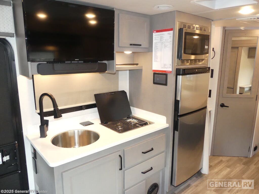Experience the open road like never before with the 2025 Fleetwood Insight 25Q. This compact yet spacious motorhome is designed for families or groups of up to six, offering a cozy queen bed, a versatile convertible dinette, and a comfortable double bed. The front living area provides a welcoming space to relax and unwind, complete with a flip-up table and an LED TV for entertainment on the go. The center kitchen is equipped with a mid-size electric refrigerator, a two-burner cooktop, and a convection microwave, making meal prep a breeze. The rear of the Insight 25Q is dedicated to a well-appointed bathroom and a private bedroom, ensuring comfort and privacy. The powered retractable awning extends your living space to the outdoors, perfect for enjoying the scenery wherever you park. Built on a Mercedes-Benz Sprinter 3500 chassis with a robust I4 engine, this diesel-powered RV promises a smooth and efficient drive. With its thoughtful layout and modern amenities, the Fleetwood Insight 25Q is your ticket to endless adventures. For more information, visit your nearest General RV dealership.