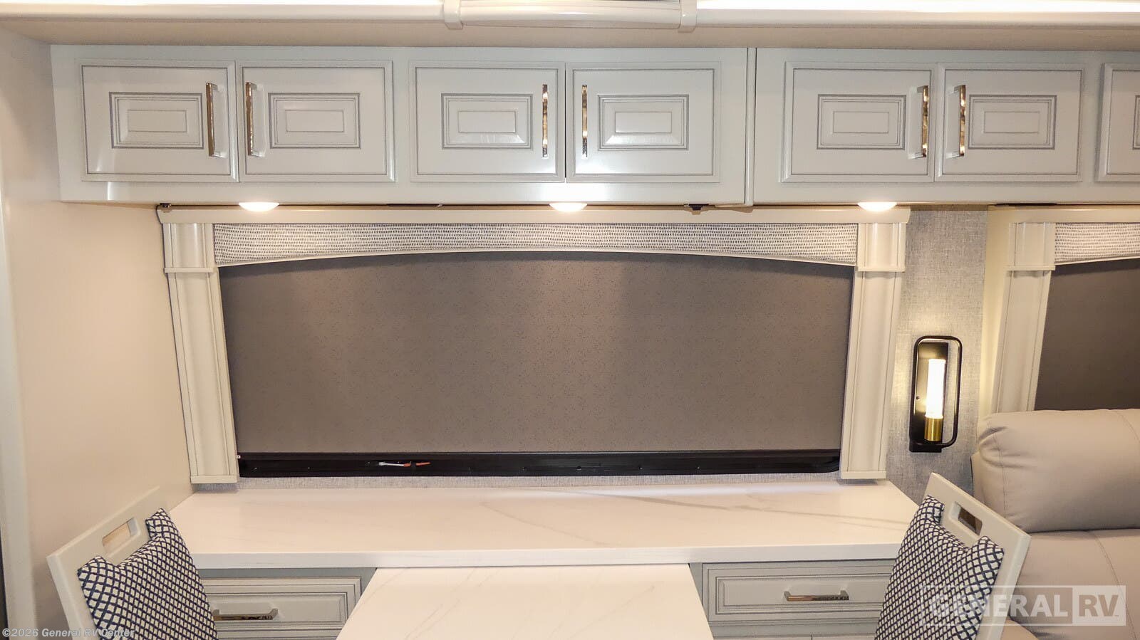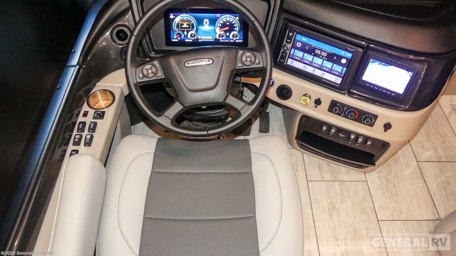 Step into the future of luxury travel with the 2025 Fleetwood Palisade 45DS. This impressive diesel pusher, built on the robust Freightliner XC-Series chassis and powered by a 450-horsepower Cummins engine, offers both power and elegance. With its spacious 44.67-foot length, this RV is designed to accommodate up to eight travelers comfortably, featuring a plush king-size bed and a convertible sleeper sofa. The heart of the Palisade is its center kitchen, equipped with a full-size electric refrigerator, convection microwave, and a two-burner cooktop, ensuring that you can whip up gourmet meals on the go. The Palisade 45DS's floorplan is a marvel of modern design, seamlessly integrating a front living area with a 94" motion power lounge and a rear/center bath featuring dual sinks and a stylish shower. The center bedroom offers a serene retreat with ample overhead storage, while the automatic heater ensures comfort in any climate. Outside, enjoy the convenience of a 19.7 ft. powered retractable awning, making it perfect for outdoor gatherings. With a towing capacity of 15,000 lbs and a fuel capacity of 150 gallons, this RV is ready for any adventure. To explore this magnificent RV further, visit your nearest General RV dealership.