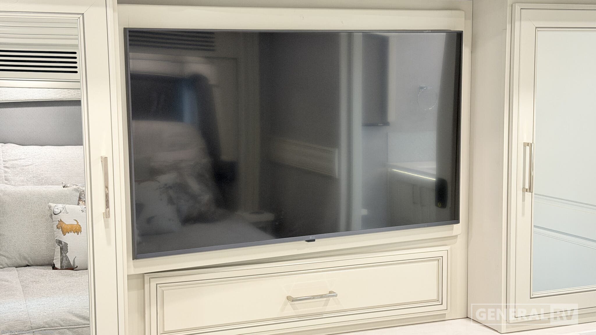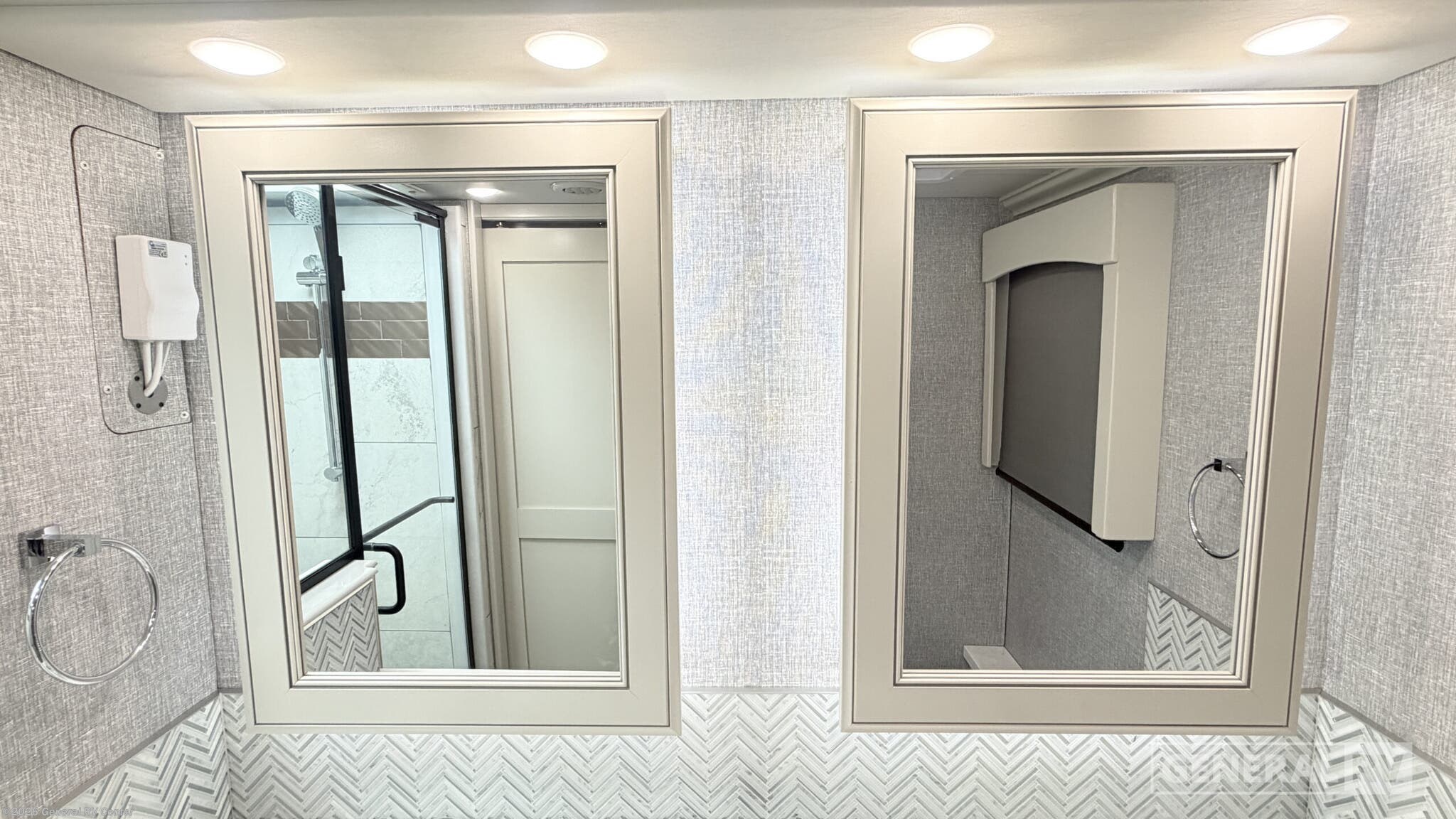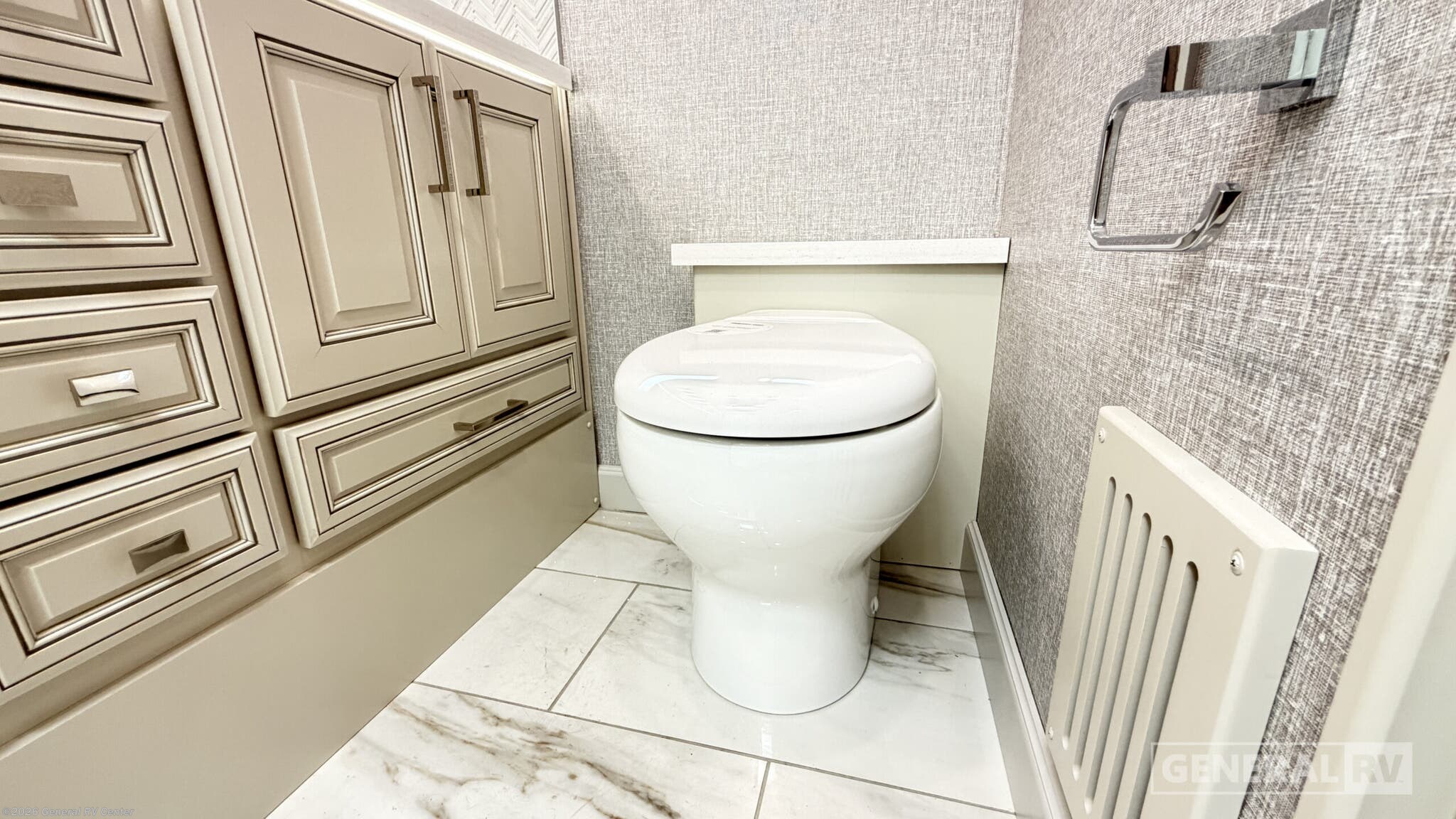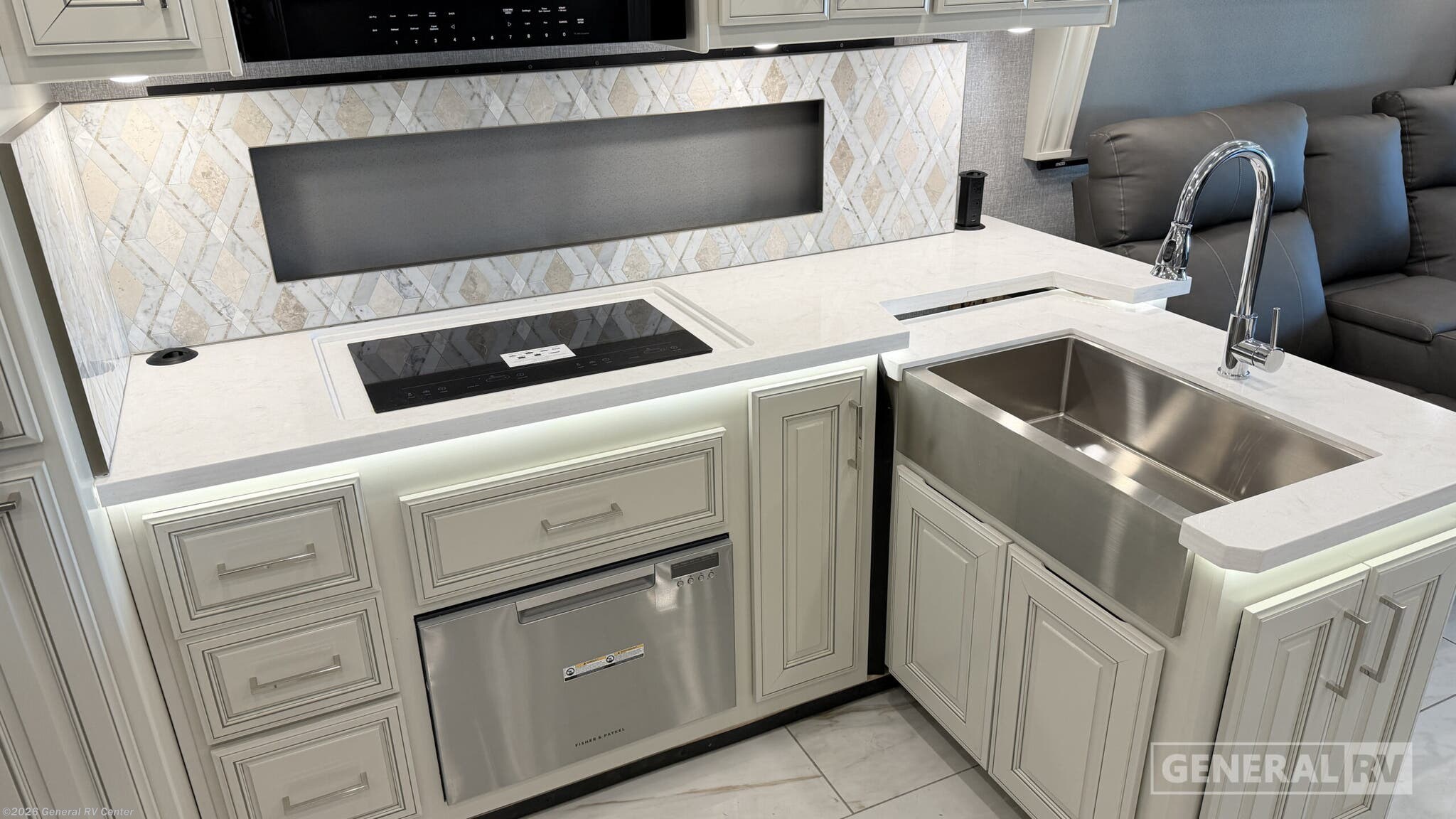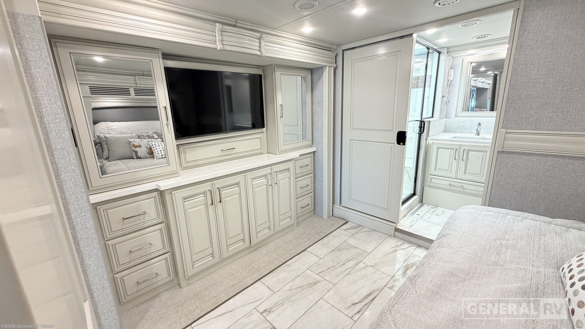 Step into the future of luxury travel with the 2025 Fleetwood Palisade 45FS. This magnificent diesel pusher, powered by a robust Cummins I6 engine, is designed for those who crave adventure without sacrificing comfort. With a spacious length of nearly 45 feet, this RV offers a thoughtfully designed floorplan that includes a front living area perfect for entertaining, complete with a 50" motion power lounge and a 72" sleeper sofa. The center kitchen, equipped with a convection microwave and full-size electric refrigerator, makes meal preparation a breeze, whether you're parked at a campsite or on the move. The Palisade 45FS is not just about luxury; it's about practicality too. It features a well-appointed center bedroom with a king-sized bed and convertible bunks, making it ideal for families or groups, comfortably sleeping up to eight. Enjoy the convenience of a washer and dryer and ample storage throughout. The rear and center bath areas, featuring a sophisticated plastic and glass shower, ensure everyone stays refreshed on the road. With a 150-gallon fuel capacity and a towing capacity of 15,000 pounds, your journey is limitless. Experience the perfect blend of elegance and functionality in the Fleetwood Palisade 45FS. For more details, visit your nearest General RV dealership.
