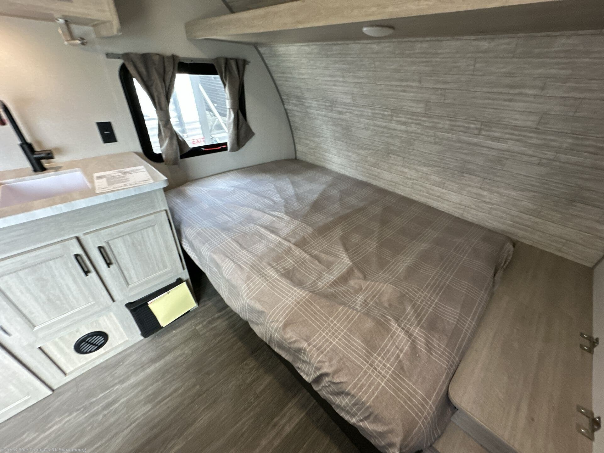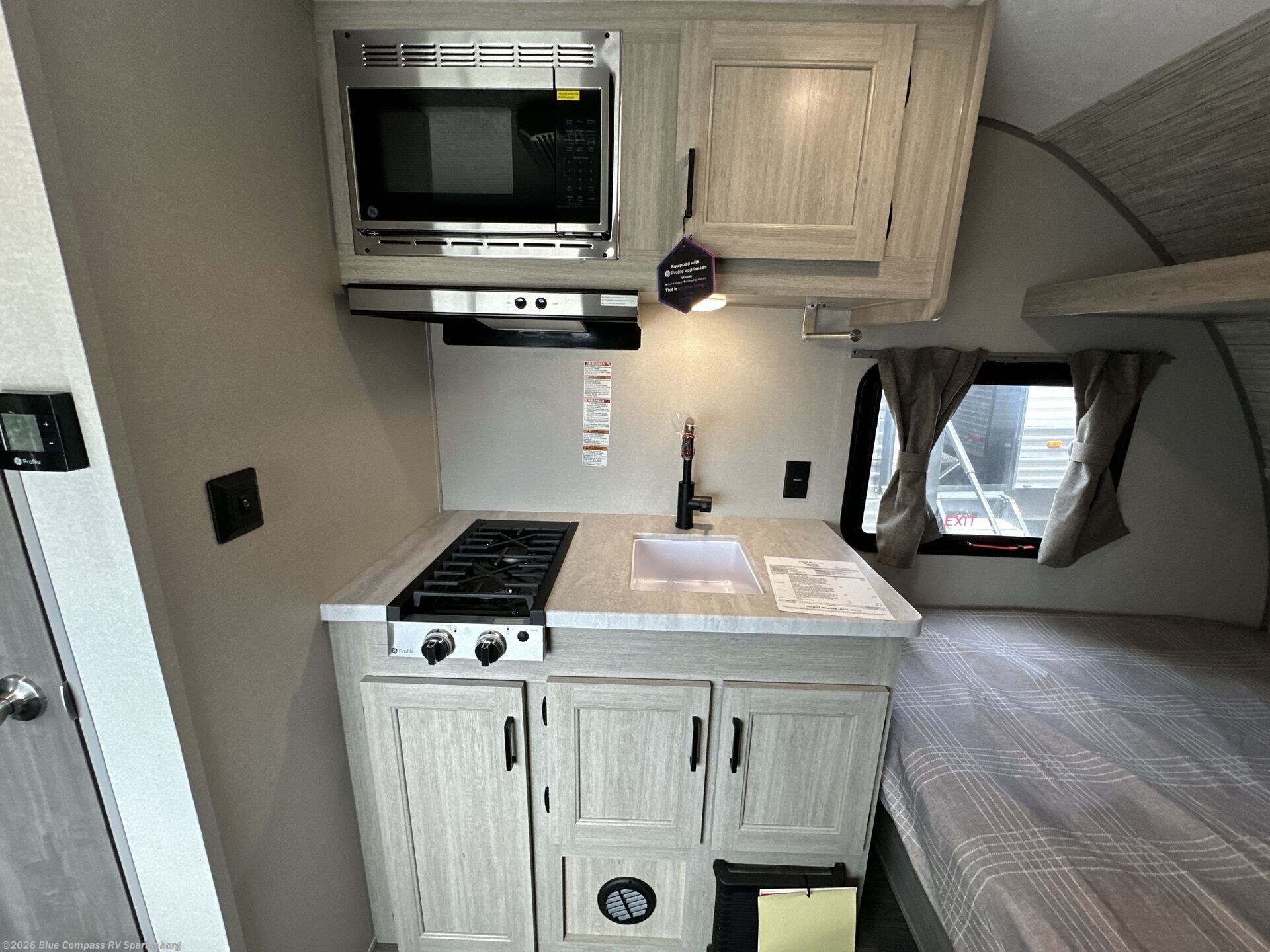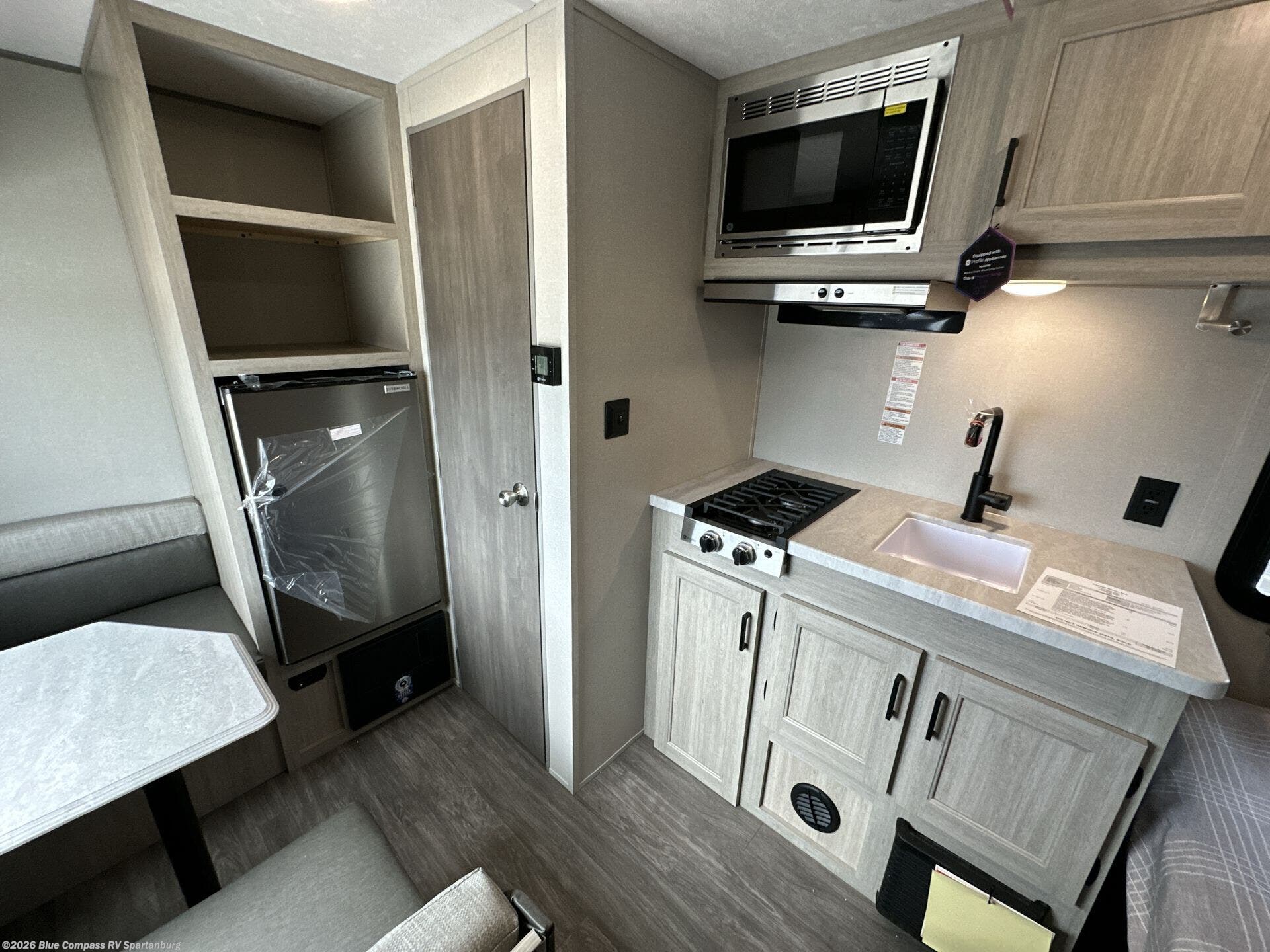 This lightweight travel trailer includes everything you need for comfortable camping trips at the lake. You can make your meals on the two burner cooktop or in the stainless steel microwave, and a 3.3 cu. ft. 12V refrigerator will keep leftovers fresh. A front queen bed provides a great night's rest, and there is a 29" booth dinette that will double as both dining and additional sleeping space. And a private bath with a 24" x 32" shower and toilet will let you easily freshen up without having to use the camp's facilities!