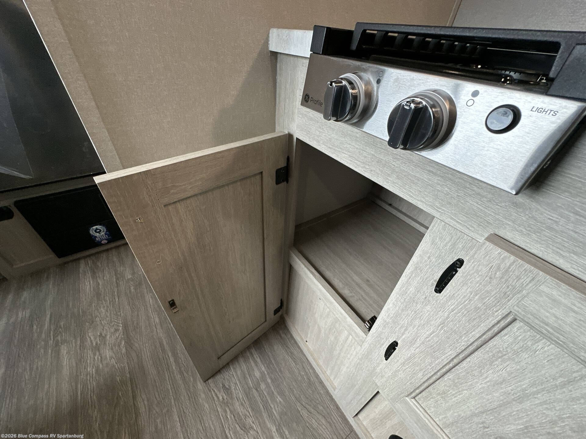 Comfortability, usability, and quality is what you will find in each one of these Forest River Aurora Light travel trailers! They are designed with a superior build and packed full with industry leading, functional, and distinctive standard features. The diamond plate rock guard will protect your unit from road debris and the nitrogen filled radial tires, which keep their pressure longer, offer better fuel economy. You will also find upgraded JBL Elite exterior speaker outside, an electric awning with multicolor lights and remote, plus flush mount baggage doors for easy packing. The interiors are beautifully designed with matte black kitchen and bath faucets, black nightshades in the living room, and GE kitchen appliances!