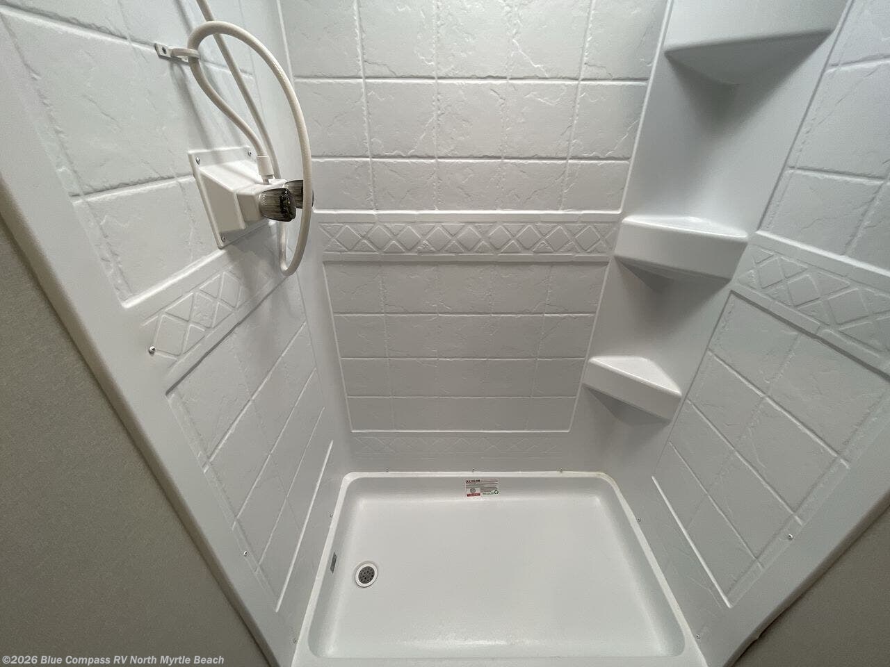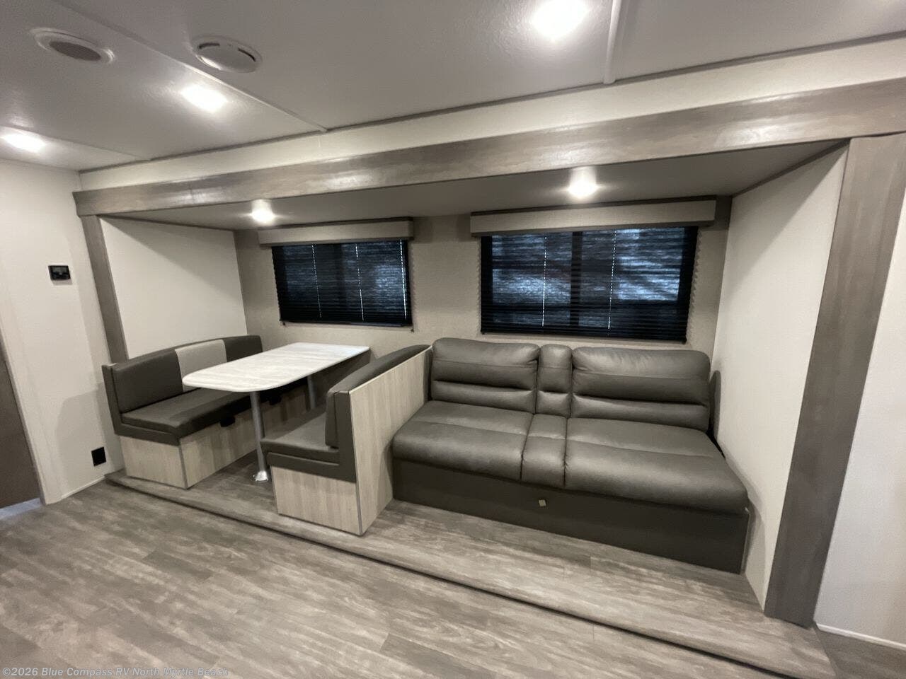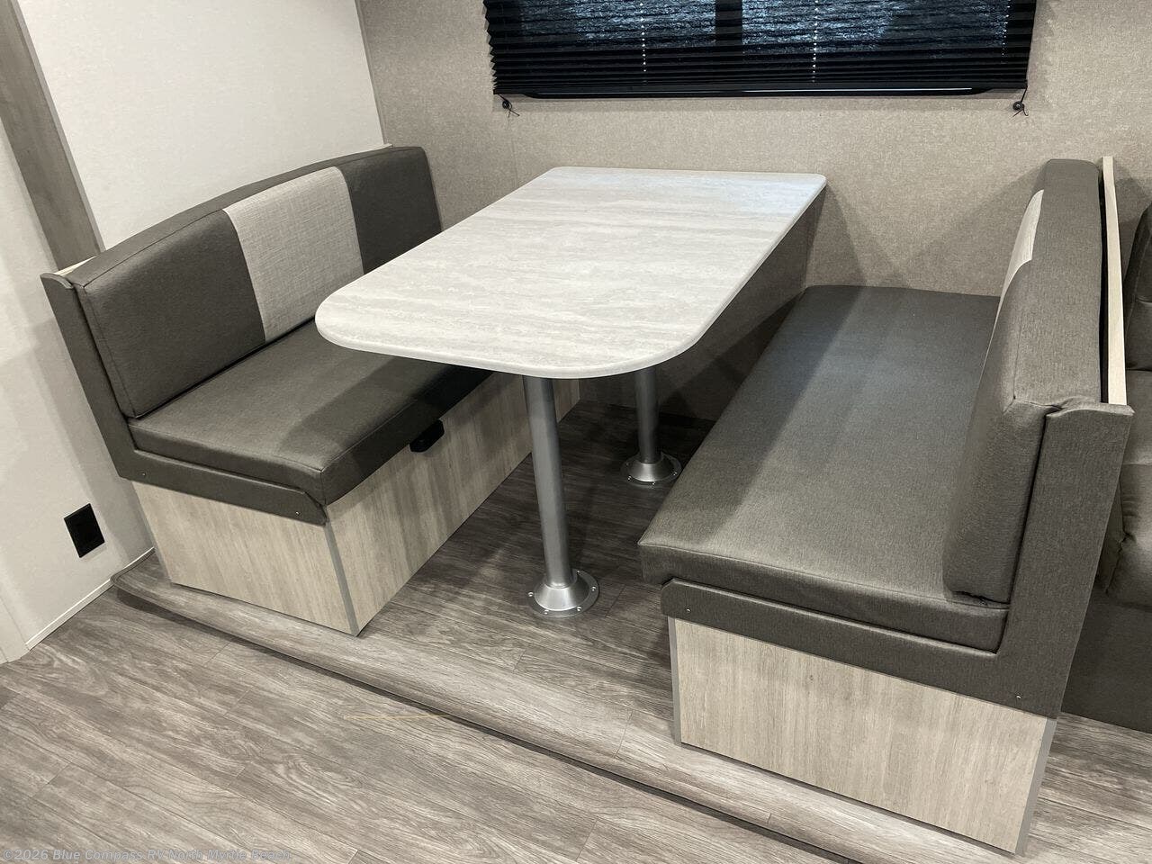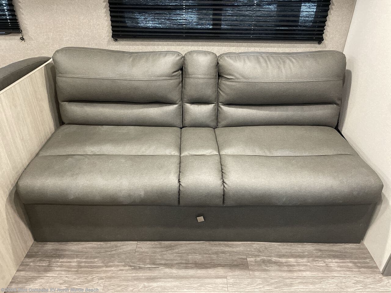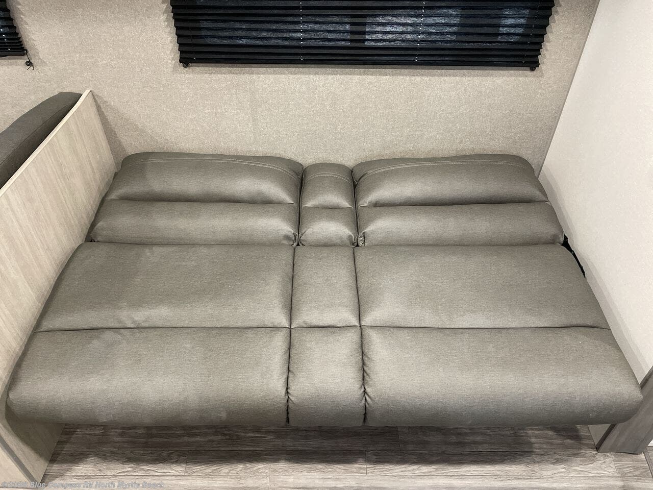 Everyone will have a comfortable time camping in this travel trailer! It features a set of double sized bunk beds for the kids or guests to sleep on and are conveniently next to the rear corner bathroom which has a tub/shower with a skylight above for added natural lighting. The booth dinette and sofa slide opens up the kitchen area so you have more space to prepare your best meals with the three burner cooktop. When you're ready to wind down your nights, grab a snack from the large pantry, a beverage from the 10.7 cu. ft. refrigerator, and place your drink in the cupholder/arm rest of the sofa while you watch a movie at the entertainment center!