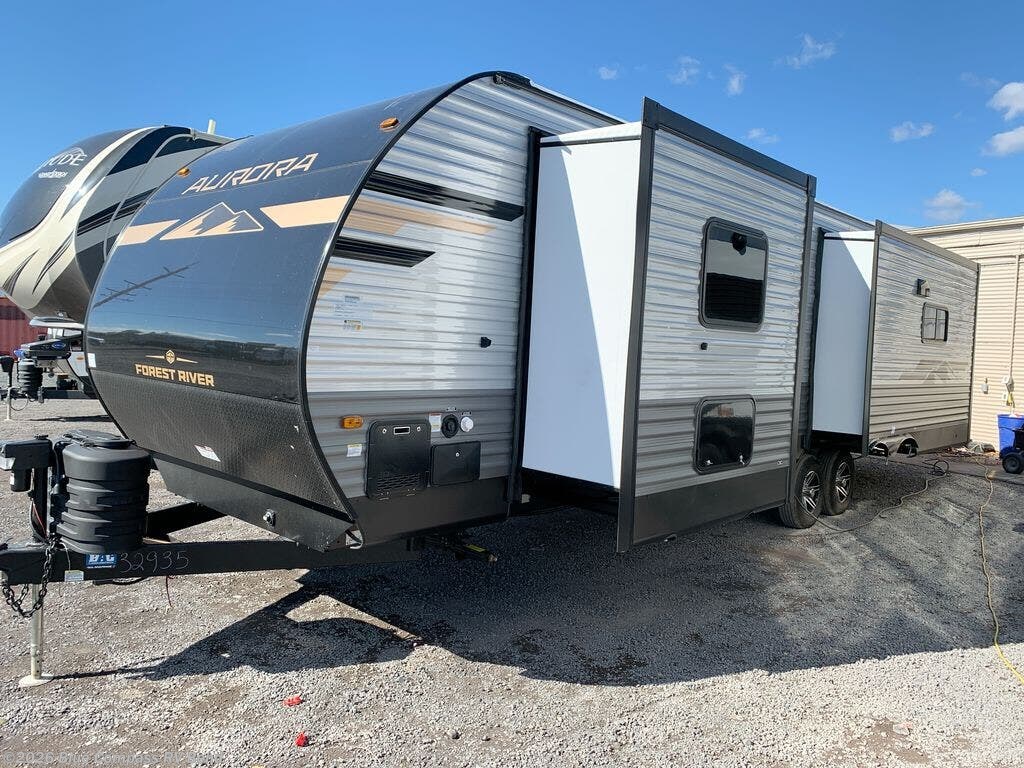 Comfortability, usability, and quality is what you will find in each one of these Forest River Aurora travel trailers, toy haulers or destination trailers! They are designed with a superior build and packed full with industry leading, functional, and distinctive standard features. SolidStep entrance steps and a Safe-T rail door assist on main entry door to help you safely enter and exit the unit. The diamond plate rock guard will protect your unit from road debris and the nitrogen filled radial tires, which keep their pressure longer, offer better fuel economy. You will also find upgraded JBL Elite exterior speakers outside, an electric awning with multicolor lights and remote, plus flush mount baggage doors for easy packing. The interiors are beautifully designed with a deep undermount farm style sink, stainless steel appliances, and linoleum flooring in the slide outs which will be easy to clean. Come find your favorite model today!