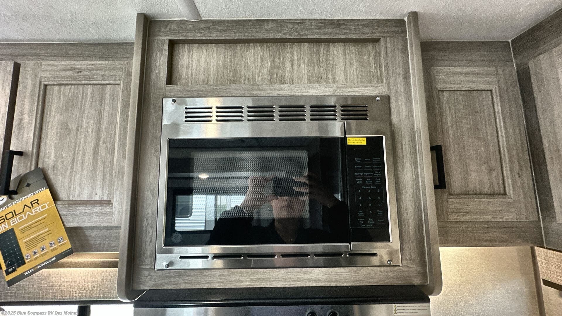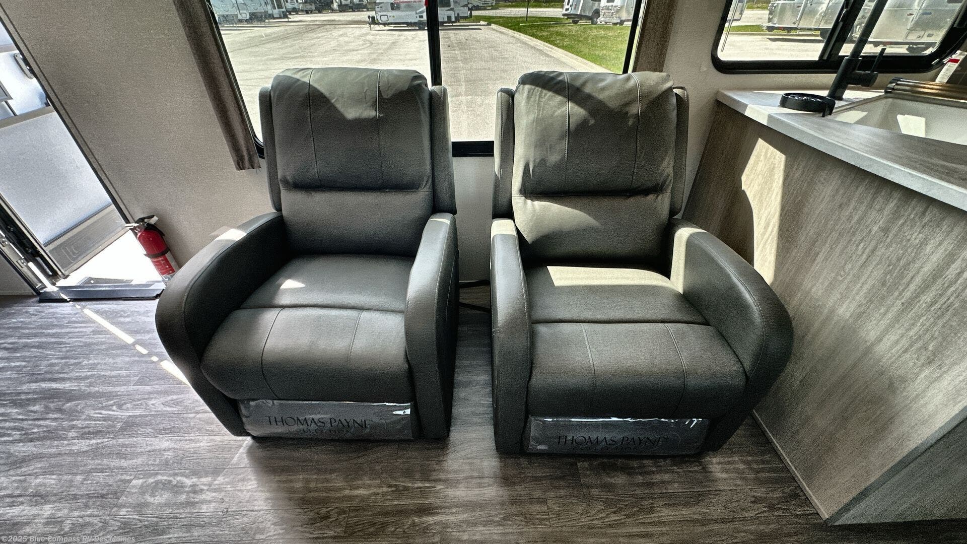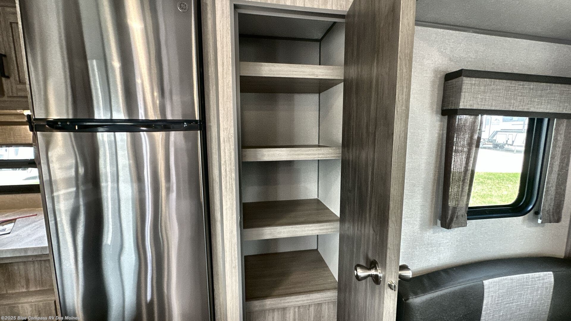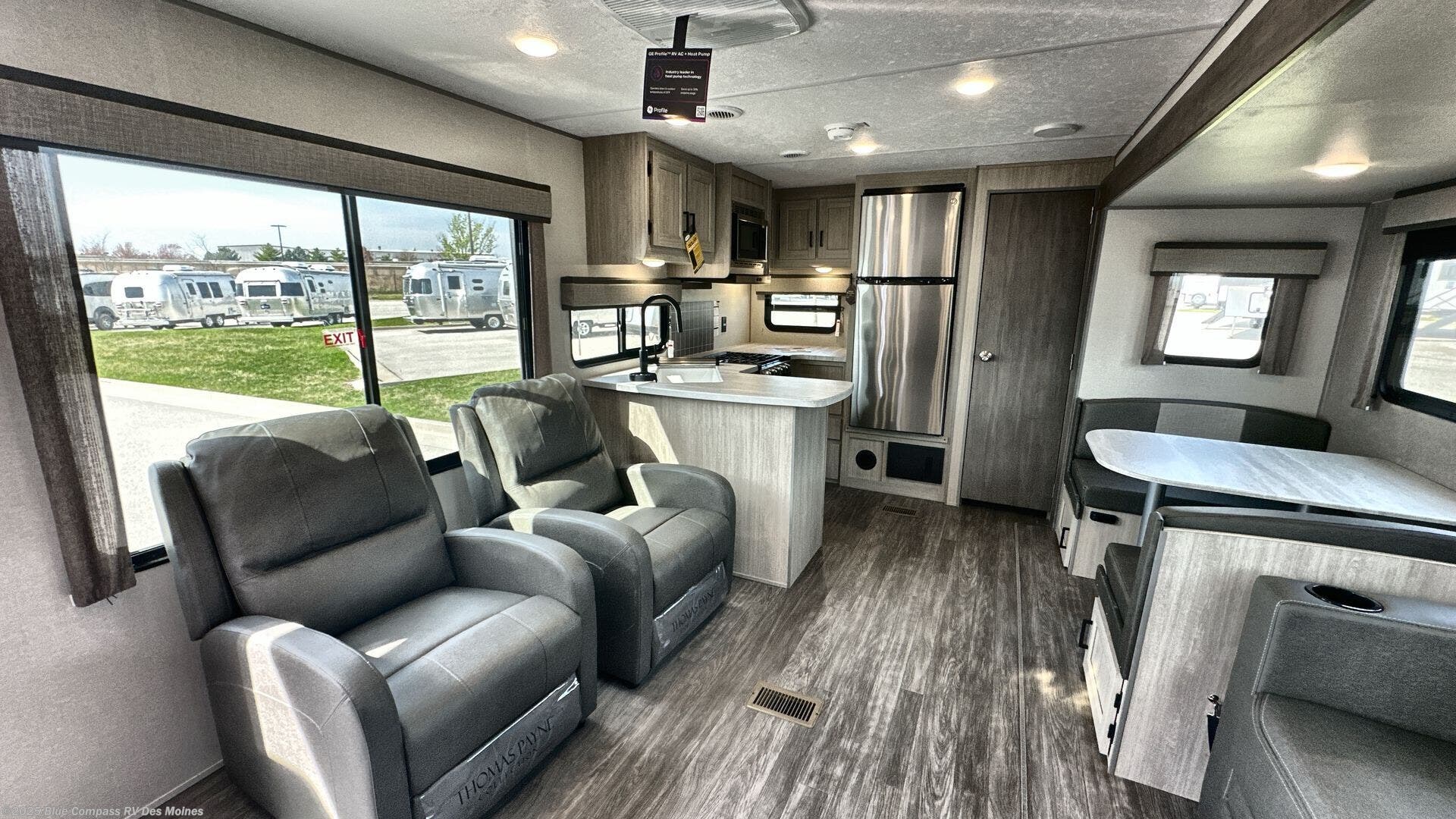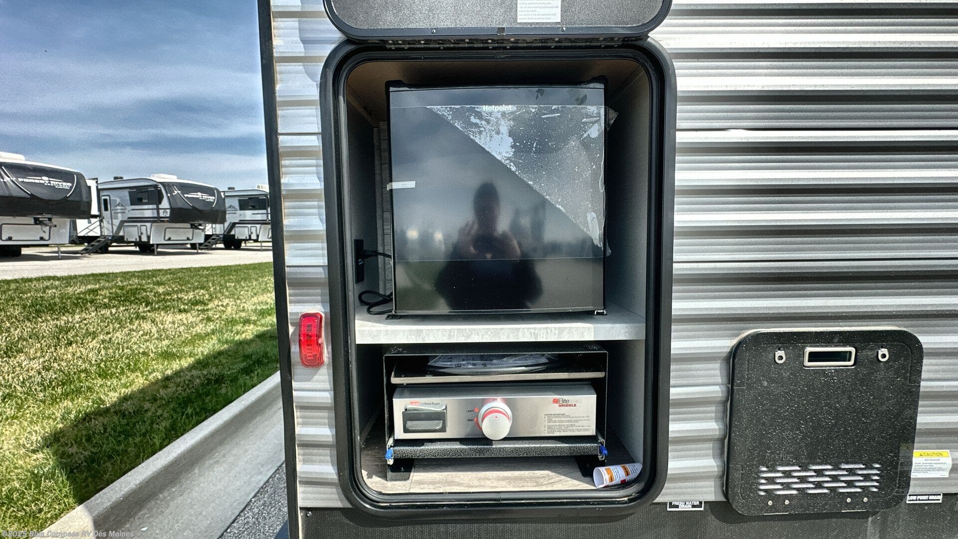 The chef will love cooking in the rear kitchen of this travel trailer! You will feel right at home in the front private bedroom with the 60" x 74" queen bed slide across from a dresser and a front closet that has an area prepped for an optional washer and dryer. There is an optional fireplace and entertainment center in the living area in by the two recliner lounge chairs and the 68" sofa next to the 45" booth dinette. Stay clean and fresh with the 36" x 30" shower pan with a skylight above for natural lighting as you get ready in the full bathroom. The 21' electric awning has multicolor lights for you to choose your favorite color as you enjoy a refreshing beverage from the mini fridge!