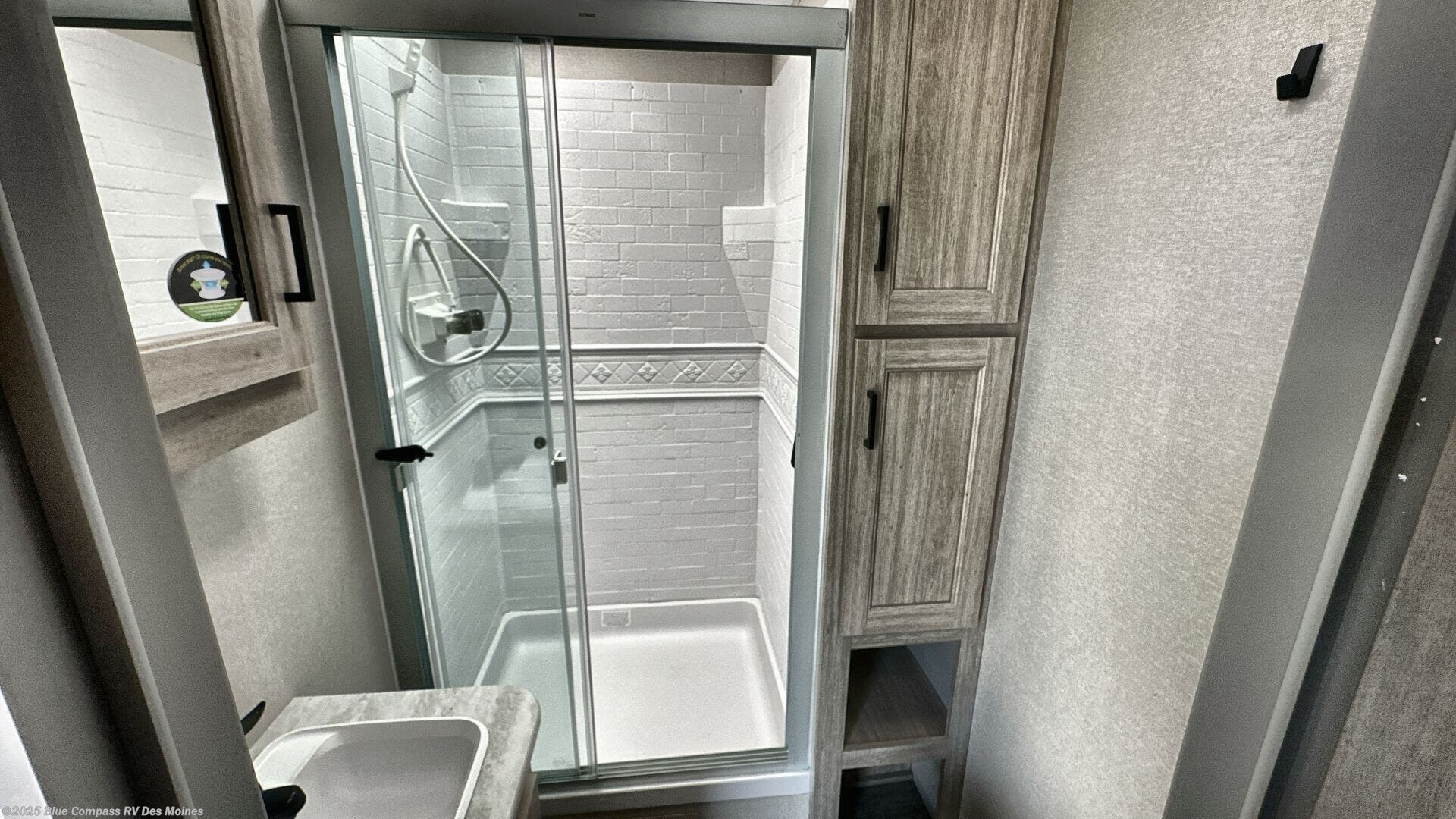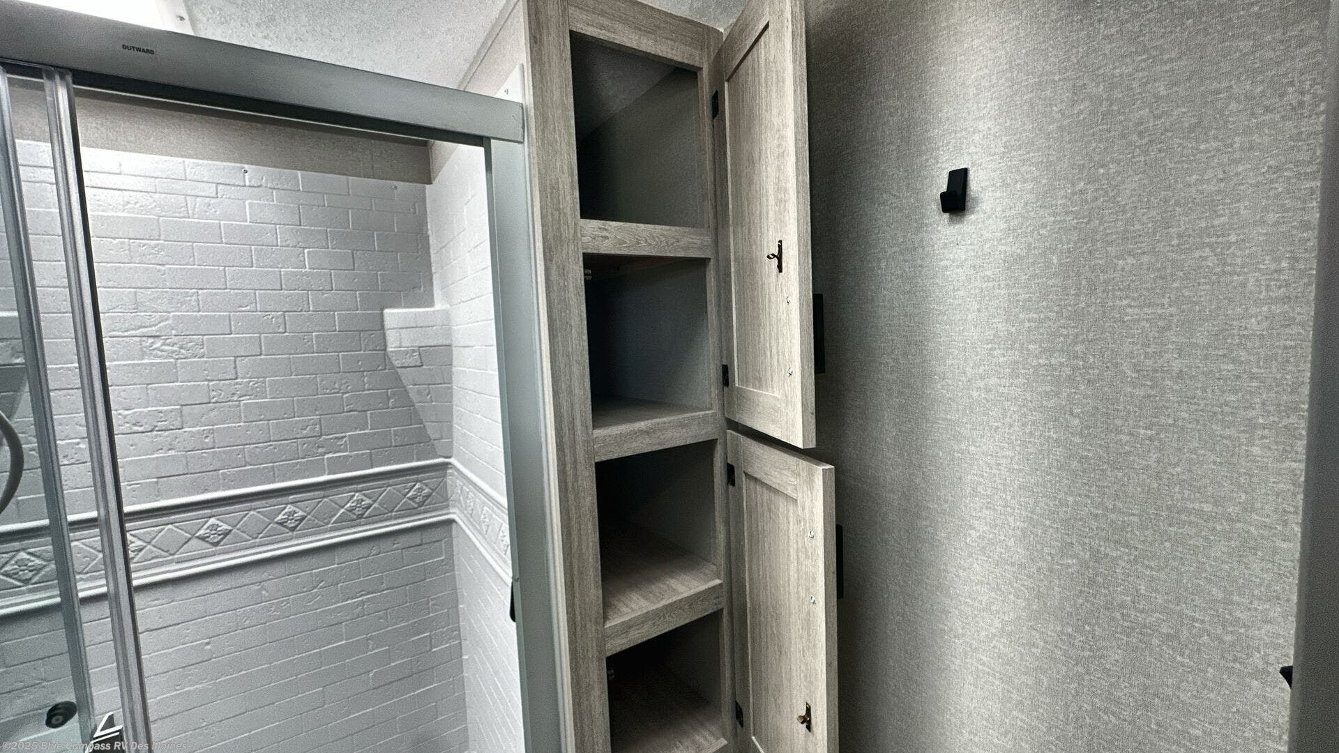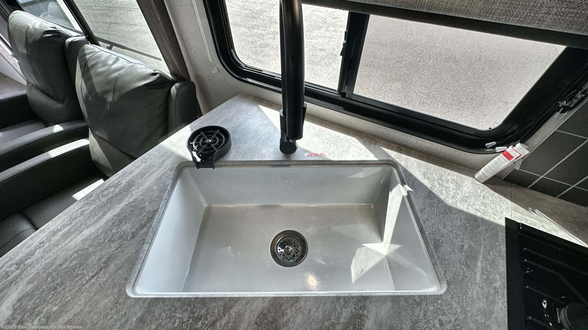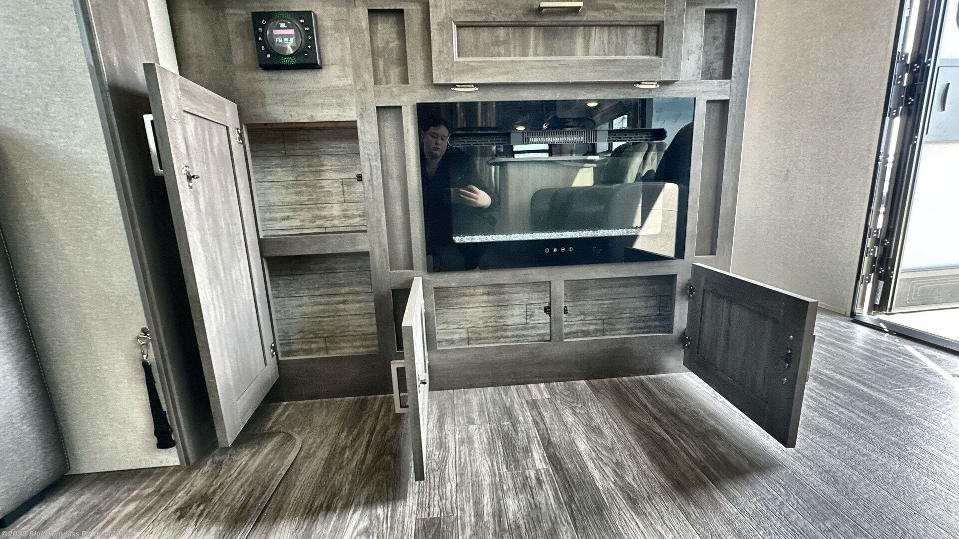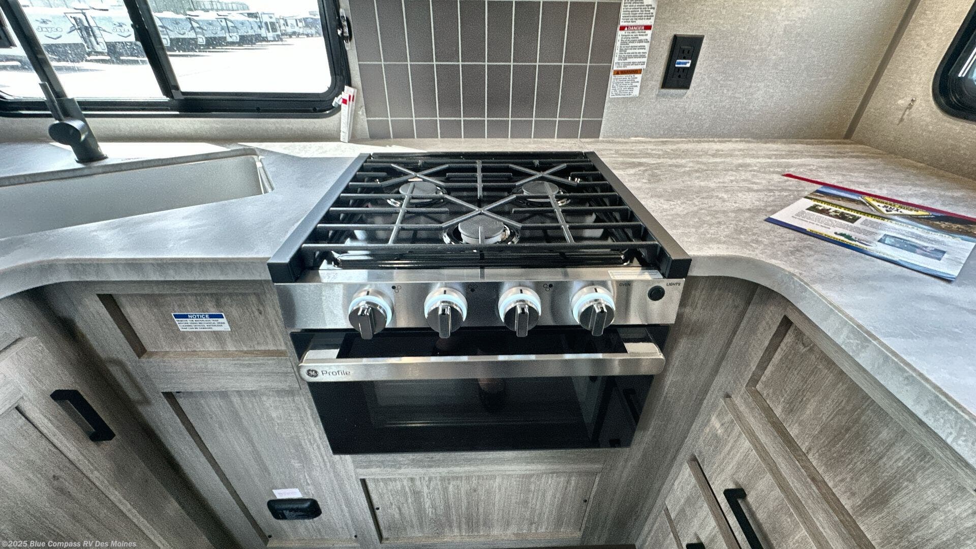 The chef will love cooking in the rear kitchen of this travel trailer! You will feel right at home in the front private bedroom with the 60" x 74" queen bed slide across from a dresser and a front closet that has an area prepped for an optional washer and dryer. There is an optional fireplace and entertainment center in the living area in by the two recliner lounge chairs and the 68" sofa next to the 45" booth dinette. Stay clean and fresh with the 36" x 30" shower pan with a skylight above for natural lighting as you get ready in the full bathroom. The 21' electric awning has multicolor lights for you to choose your favorite color as you enjoy a refreshing beverage from the mini fridge!