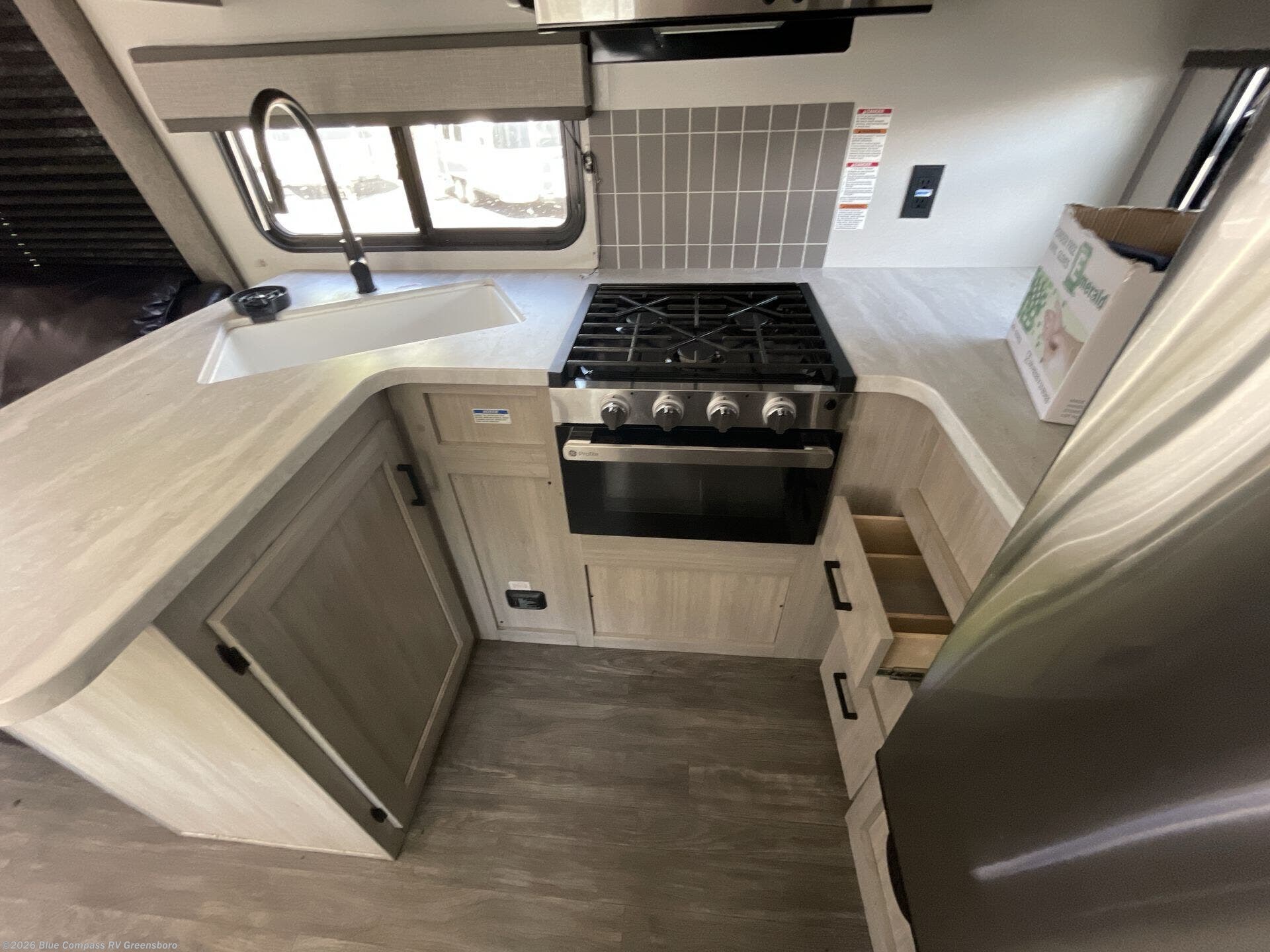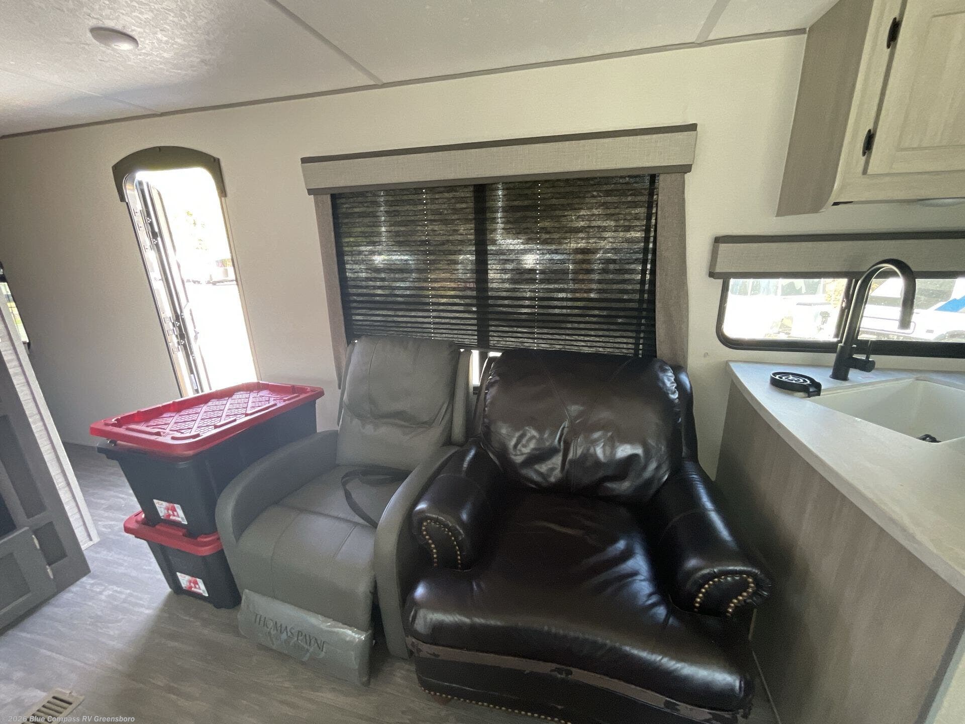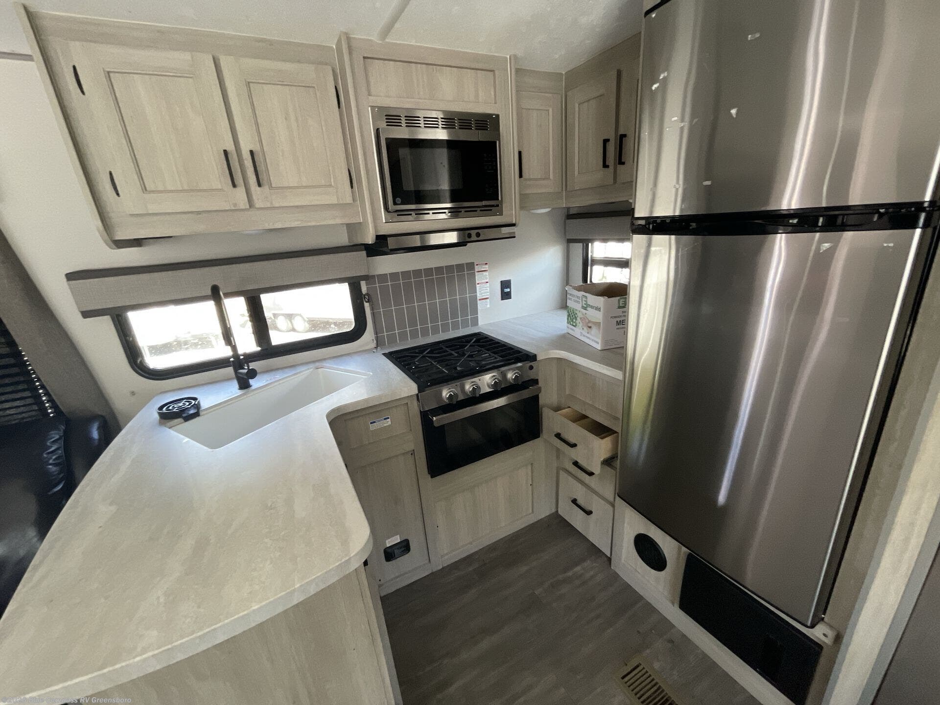 The chef will love cooking in the rear kitchen of this travel trailer! You will feel right at home in the front private bedroom with the 60" x 74" queen bed slide across from a dresser and a front closet that has an area prepped for an optional washer and dryer. There is an optional fireplace and entertainment center in the living area in by the two lounge chairs and the 68" sofa next to the 45" booth dinette. Stay clean and fresh with the 36" x 30" shower pan with a skylight above for natural lighting as you get ready in the full bathroom. The 21' electric awning has multicolor lights for you to choose your favorite color as you enjoy a refreshing beverage from the mini fridge!