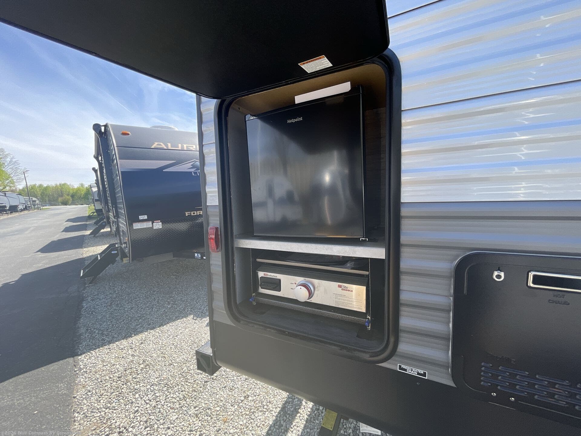 Comfortability, usability, and quality is what you will find in each one of these Forest River Aurora travel trailers, toy haulers or destination trailers! They are designed with a superior build and packed full with industry leading, functional, and distinctive standard features. SolidStep entrance steps and a Safe-T rail door assist on main entry door to help you safely enter and exit the unit. The diamond plate rock guard will protect your unit from road debris and the nitrogen filled radial tires, which keep their pressure longer, offer better fuel economy. You will also find upgraded JBL Elite exterior speakers outside, an electric awning with multicolor lights and remote, plus flush mount baggage doors for easy packing. The interiors are beautifully designed with a deep undermount farm style sink, stainless steel appliances, and linoleum flooring in the slide outs which will be easy to clean. Come find your favorite model today!