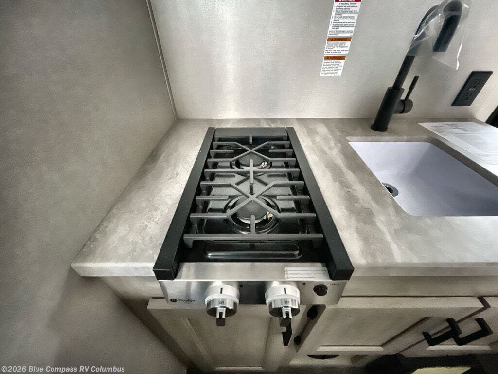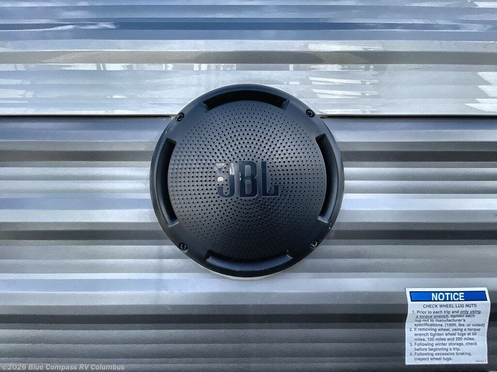 Comfortability, usability, and quality is what you will find in each one of these Forest River Aurora Light travel trailers! They are designed with a superior build and packed full with industry leading, functional, and distinctive standard features. SolidStep entrance steps and a Safe-T rail door assist on main entry door to help you safely enter and exit the unit. The diamond plate rock guard will protect your unit from road debris and the nitrogen filled radial tires, which keep their pressure longer, offer better fuel economy. You will also find upgraded JBL Elite exterior speaker outside, an electric awning with multicolor lights and remote, plus flush mount baggage doors for easy packing. The interiors are beautifully designed with matte black kitchen and bath faucets, black nightshades in the living room, and GE kitchen appliances!