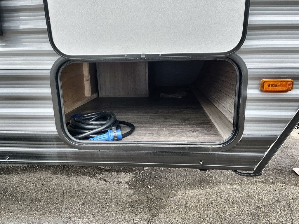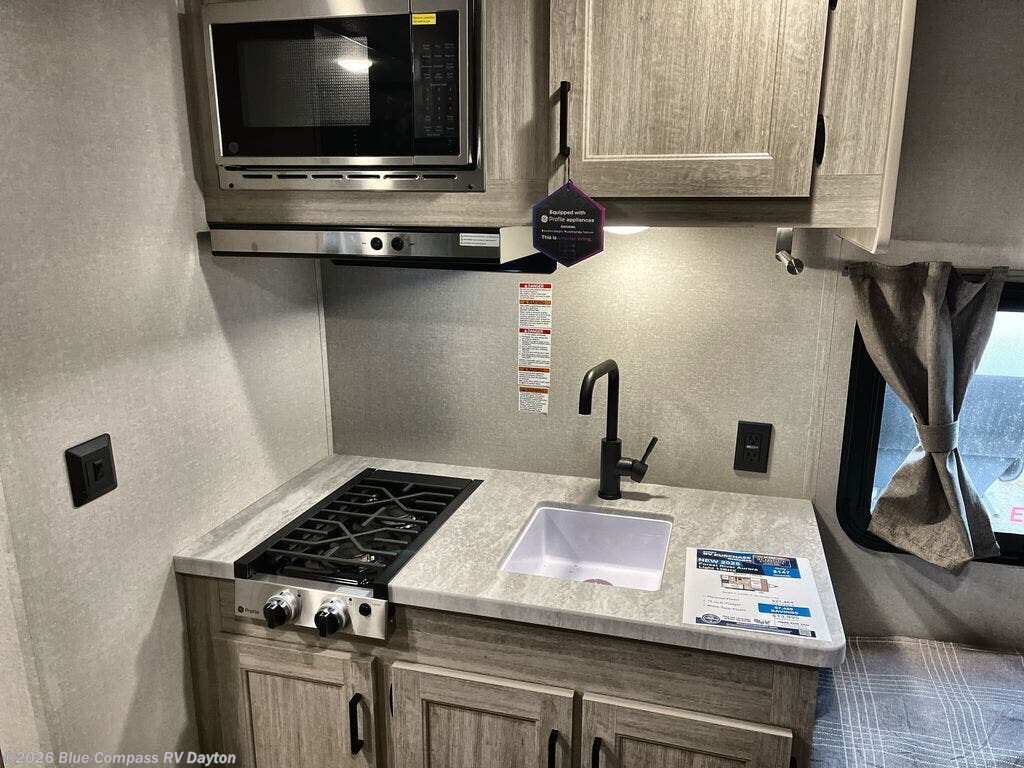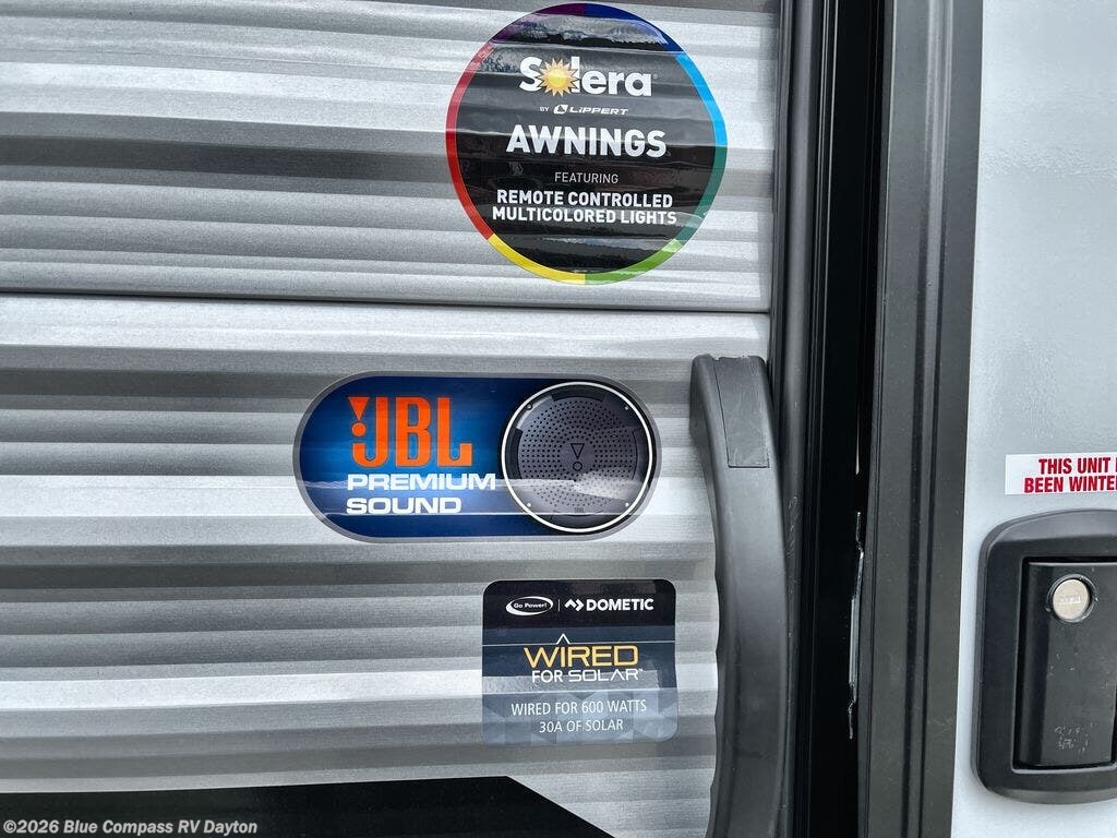 Comfortability, usability, and quality is what you will find in each one of these Forest River Aurora Light travel trailers! They are designed with a superior build and packed full with industry leading, functional, and distinctive standard features. SolidStep entrance steps and a Safe-T rail door assist on main entry door to help you safely enter and exit the unit. The diamond plate rock guard will protect your unit from road debris and the nitrogen filled radial tires, which keep their pressure longer, offer better fuel economy. You will also find upgraded JBL Elite exterior speaker outside, an electric awning with multicolor lights and remote, plus flush mount baggage doors for easy packing. The interiors are beautifully designed with matte black kitchen and bath faucets, black nightshades in the living room, and GE kitchen appliances!