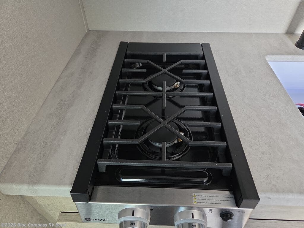 Comfortability, usability, and quality is what you will find in each one of these Forest River Aurora Light travel trailers! They are designed with a superior build and packed full with industry leading, functional, and distinctive standard features. SolidStep entrance steps and a Safe-T rail door assist on main entry door to help you safely enter and exit the unit. The diamond plate rock guard will protect your unit from road debris and the nitrogen filled radial tires, which keep their pressure longer, offer better fuel economy. You will also find upgraded JBL Elite exterior speaker outside, an electric awning with multicolor lights and remote, plus flush mount baggage doors for easy packing. The interiors are beautifully designed with matte black kitchen and bath faucets, black nightshades in the living room, and GE kitchen appliances!