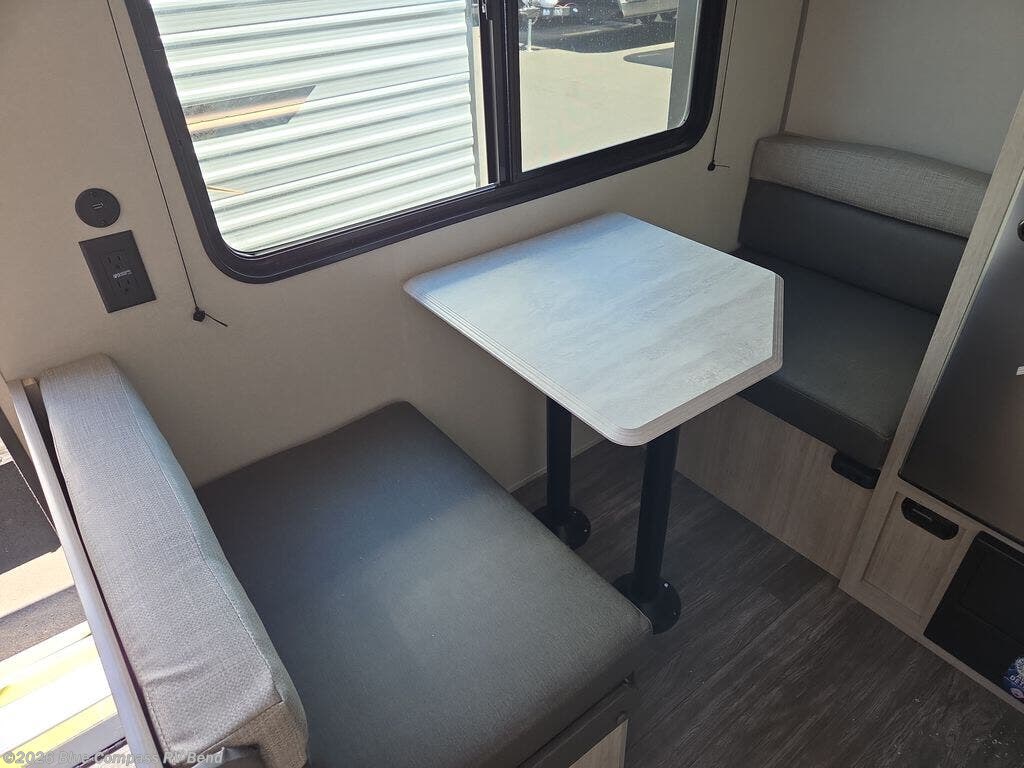 This lightweight travel trailer includes everything you need for comfortable camping trips at the lake. You can make your meals on the two burner cooktop or in the stainless steel microwave, and a 3.3 cu. ft. 12V refrigerator will keep leftovers fresh. A front queen bed provides a great night's rest, and there is a 29" booth dinette that will double as both dining and additional sleeping space. And a private bath with a 24" x 32" shower and toilet will let you easily freshen up without having to use the camp's facilities!