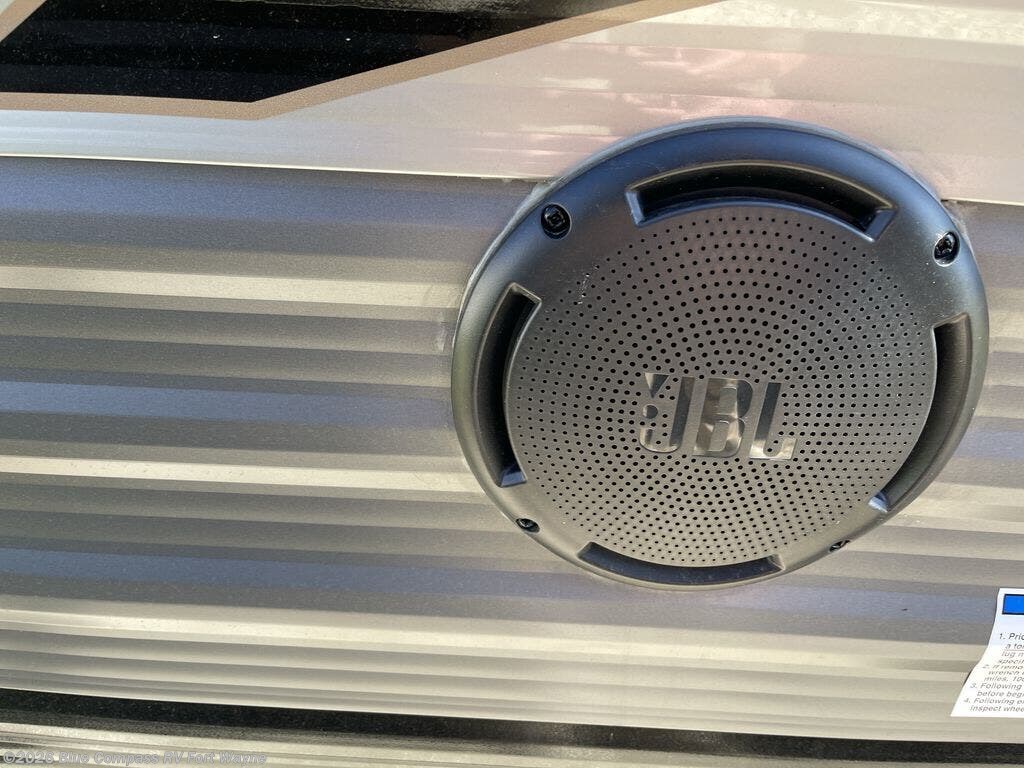 Comfortability, usability, and quality is what you will find in each one of these Forest River Aurora Light travel trailers! They are designed with a superior build and packed full with industry leading, functional, and distinctive standard features. SolidStep entrance steps and a Safe-T rail door assist on main entry door to help you safely enter and exit the unit. The diamond plate rock guard will protect your unit from road debris and the nitrogen filled radial tires, which keep their pressure longer, offer better fuel economy. You will also find upgraded JBL Elite exterior speaker outside, an electric awning with multicolor lights and remote, plus flush mount baggage doors for easy packing. The interiors are beautifully designed with matte black kitchen and bath faucets, black nightshades in the living room, and GE kitchen appliances!
