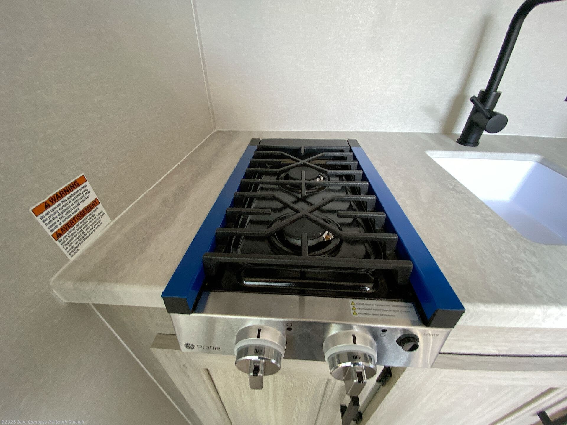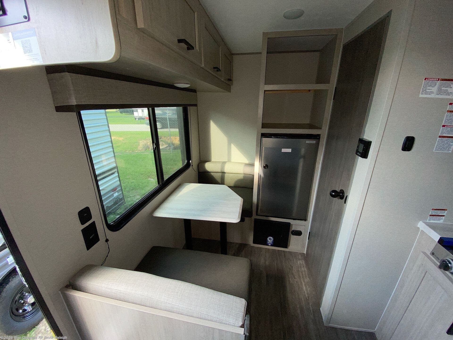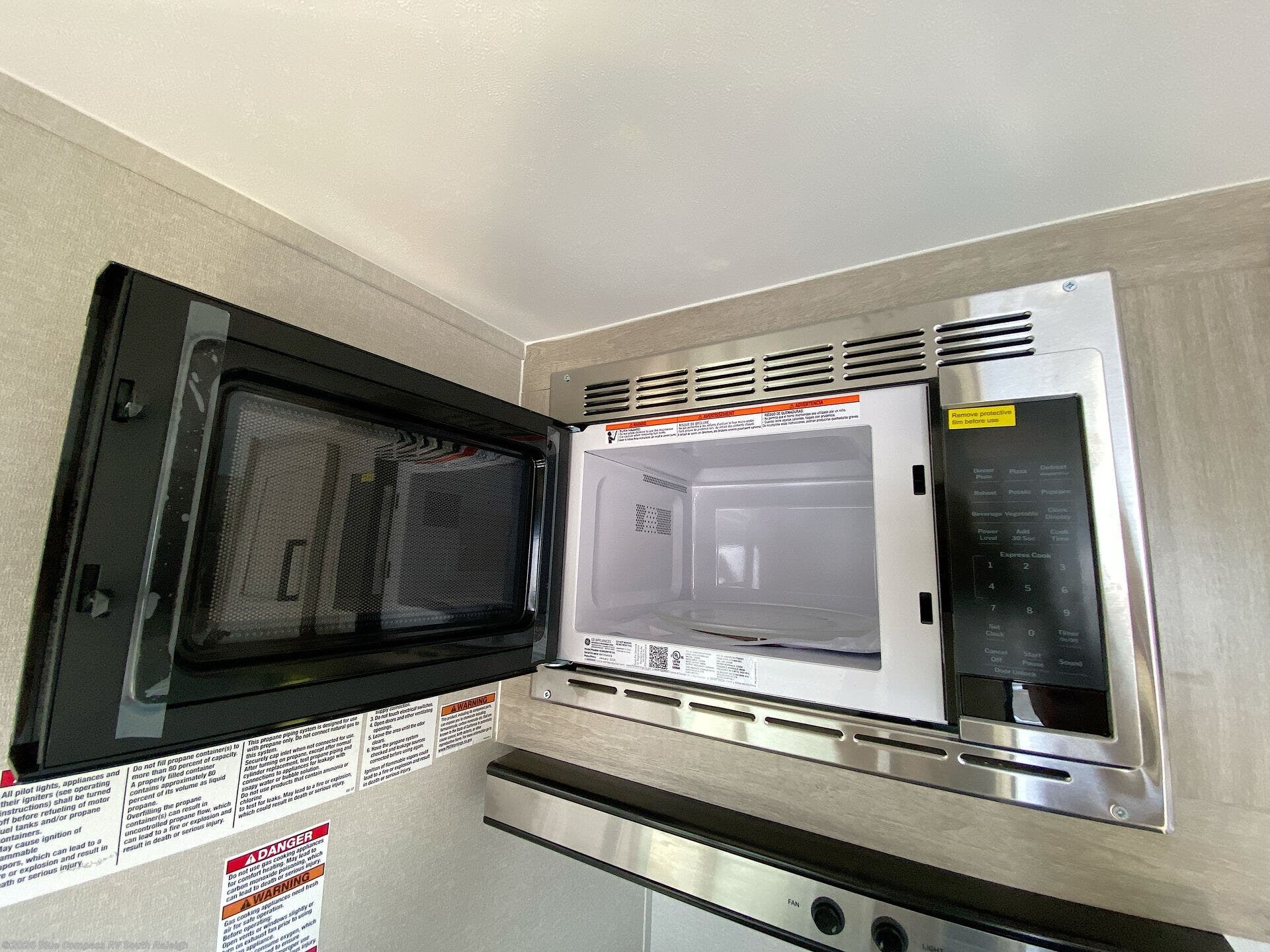This lightweight travel trailer includes everything you need for comfortable camping trips at the lake. You can make your meals on the two burner cooktop or in the stainless steel microwave, and a 3.3 cu. ft. 12V refrigerator will keep leftovers fresh. A front queen bed provides a great night's rest, and there is a 29" booth dinette that will double as both dining and additional sleeping space. And a private bath with a 24" x 32" shower and toilet will let you easily freshen up without having to use the camp's facilities!
