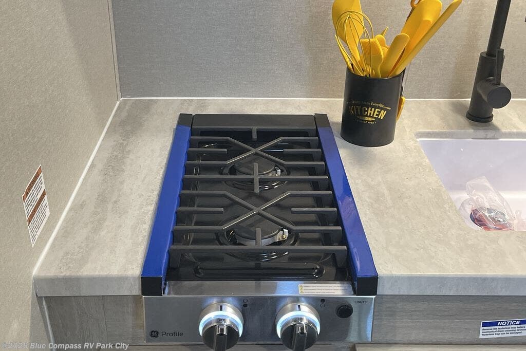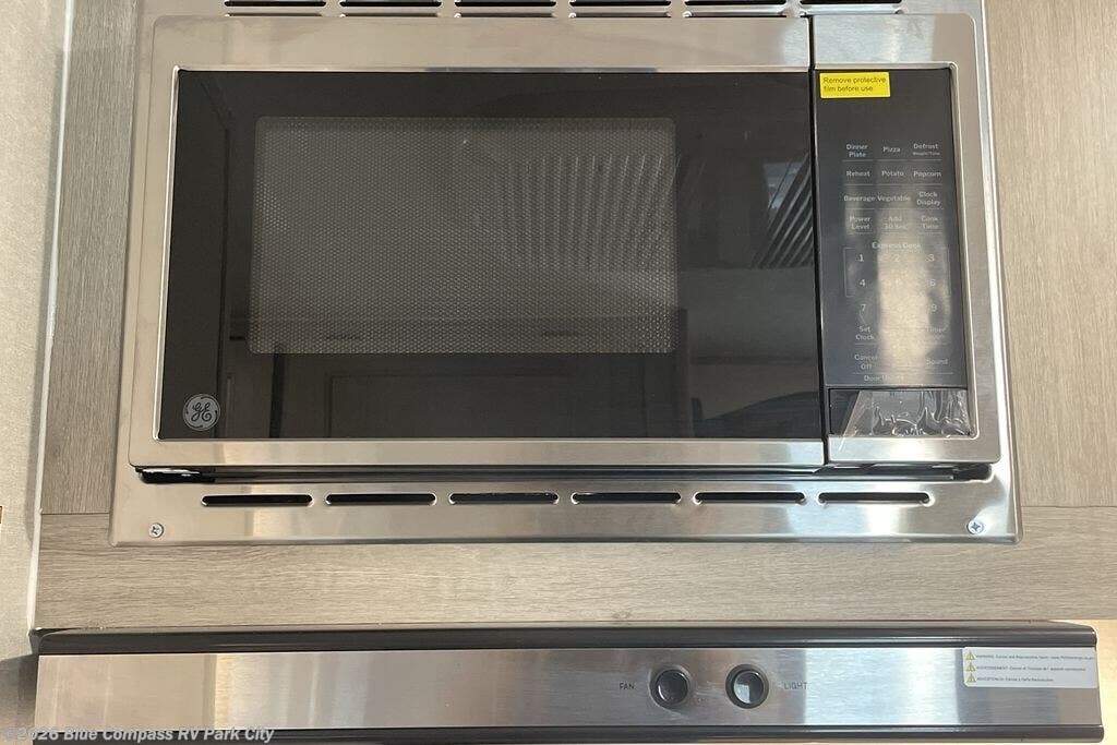 Comfortability, usability, and quality is what you will find in each one of these Forest River Aurora Light travel trailers! They are designed with a superior build and packed full with industry leading, functional, and distinctive standard features. SolidStep entrance steps and a Safe-T rail door assist on main entry door to help you safely enter and exit the unit. The diamond plate rock guard will protect your unit from road debris and the nitrogen filled radial tires, which keep their pressure longer, offer better fuel economy. You will also find upgraded JBL Elite exterior speaker outside, an electric awning with multicolor lights and remote, plus flush mount baggage doors for easy packing. The interiors are beautifully designed with matte black kitchen and bath faucets, black nightshades in the living room, and GE kitchen appliances!