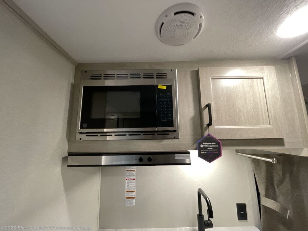 Comfortability, usability, and quality is what you will find in each one of these Forest River Aurora Light travel trailers! They are designed with a superior build and packed full with industry leading, functional, and distinctive standard features. SolidStep entrance steps and a Safe-T rail door assist on main entry door to help you safely enter and exit the unit. The diamond plate rock guard will protect your unit from road debris and the nitrogen filled radial tires, which keep their pressure longer, offer better fuel economy. You will also find upgraded JBL Elite exterior speaker outside, an electric awning with multicolor lights and remote, plus flush mount baggage doors for easy packing. The interiors are beautifully designed with matte black kitchen and bath faucets, black nightshades in the living room, and GE kitchen appliances!