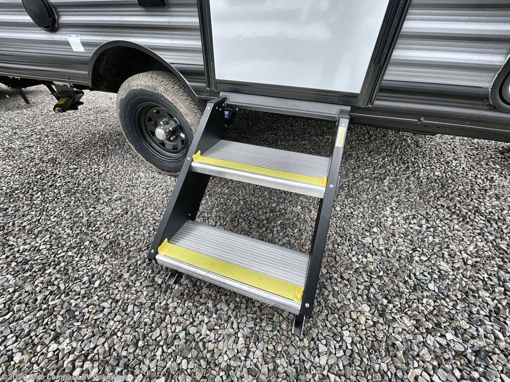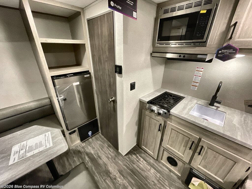 This lightweight travel trailer includes everything you need for comfortable camping trips at the lake. You can make your meals on the two burner cooktop or in the stainless steel microwave, and a 3.3 cu. ft. 12V refrigerator will keep leftovers fresh. A front queen bed provides a great night's rest, and there is a 29" booth dinette that will double as both dining and additional sleeping space. And a private bath with a 24" x 32" shower and toilet will let you easily freshen up without having to use the camp's facilities!