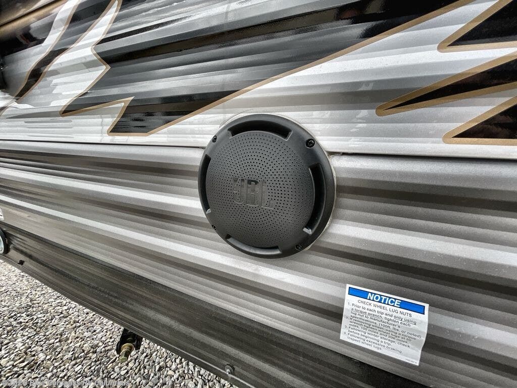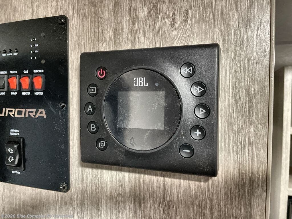 Comfortability, usability, and quality is what you will find in each one of these Forest River Aurora Light travel trailers! They are designed with a superior build and packed full with industry leading, functional, and distinctive standard features. SolidStep entrance steps and a Safe-T rail door assist on main entry door to help you safely enter and exit the unit. The diamond plate rock guard will protect your unit from road debris and the nitrogen filled radial tires, which keep their pressure longer, offer better fuel economy. You will also find upgraded JBL Elite exterior speaker outside, an electric awning with multicolor lights and remote, plus flush mount baggage doors for easy packing. The interiors are beautifully designed with matte black kitchen and bath faucets, black nightshades in the living room, and GE kitchen appliances!
